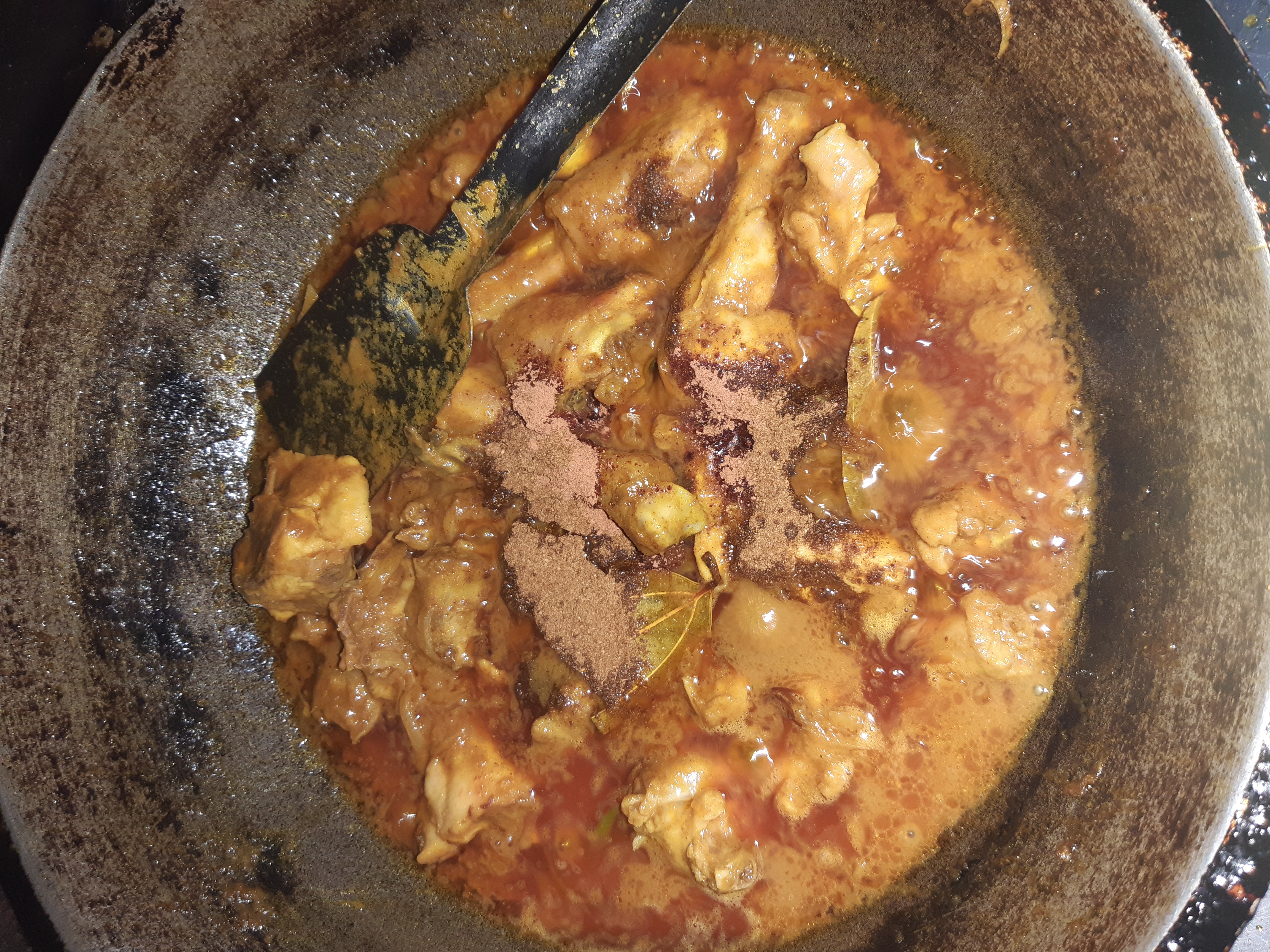 এখন গরম মসলার গুঁড়া এবং জিরার গুড়া কড়াইয়ের ভেতর দিয়ে মিনিট দশেক রান্না করি।