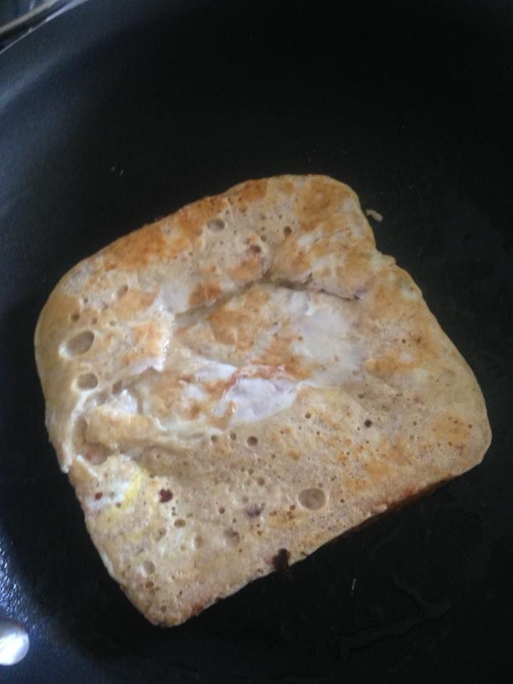 Now you can put your soon-to-be french toast on the stove. Leave it on medium heat with a lid for about 2 mins. Then flip it.