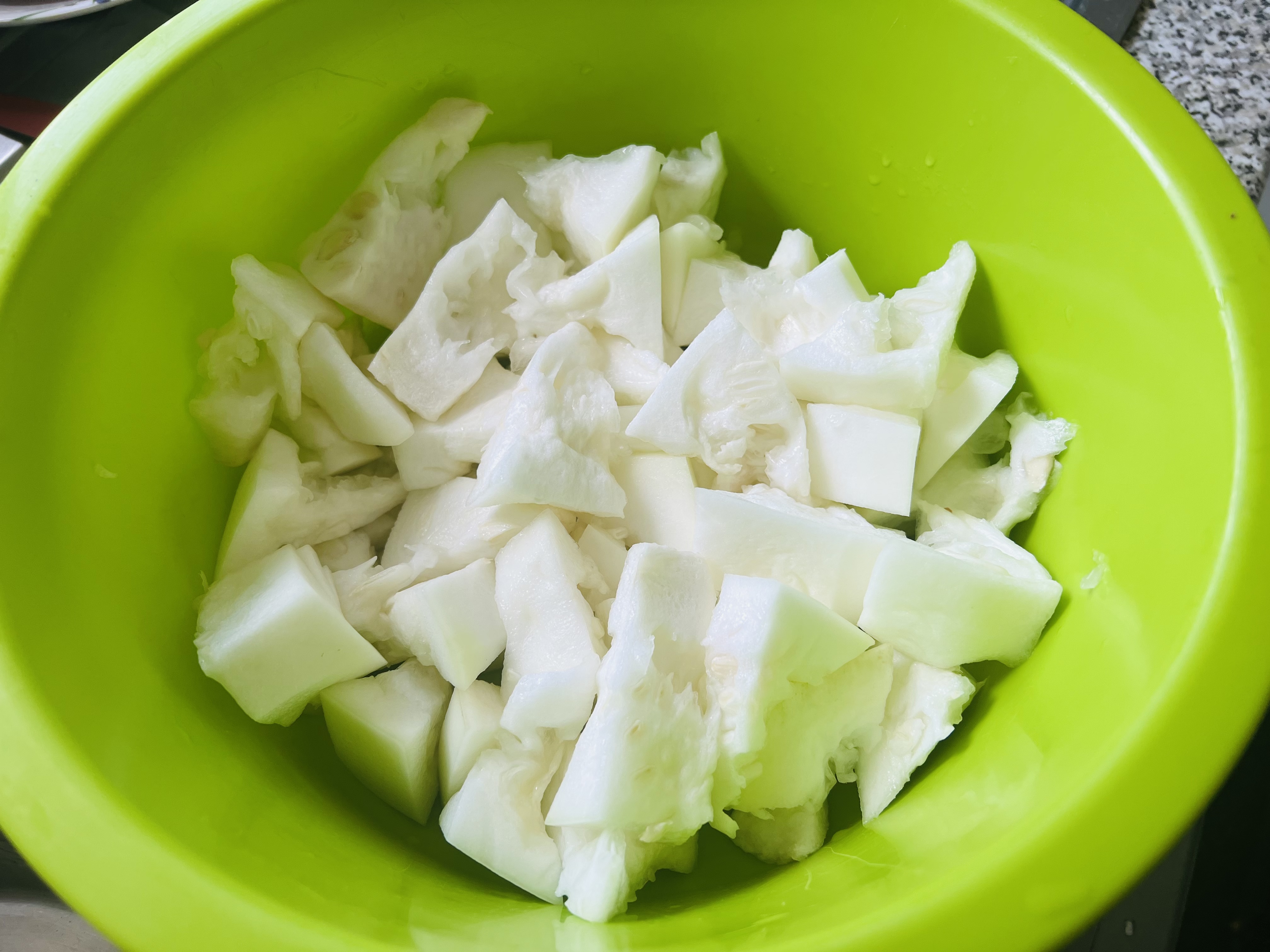 এরপর লাউগুলো ভালোভাবে কেটে পিস পিস করে নিয়েছি ।এরপর কড়াইতে তেল গরম করে নিয়েছি।