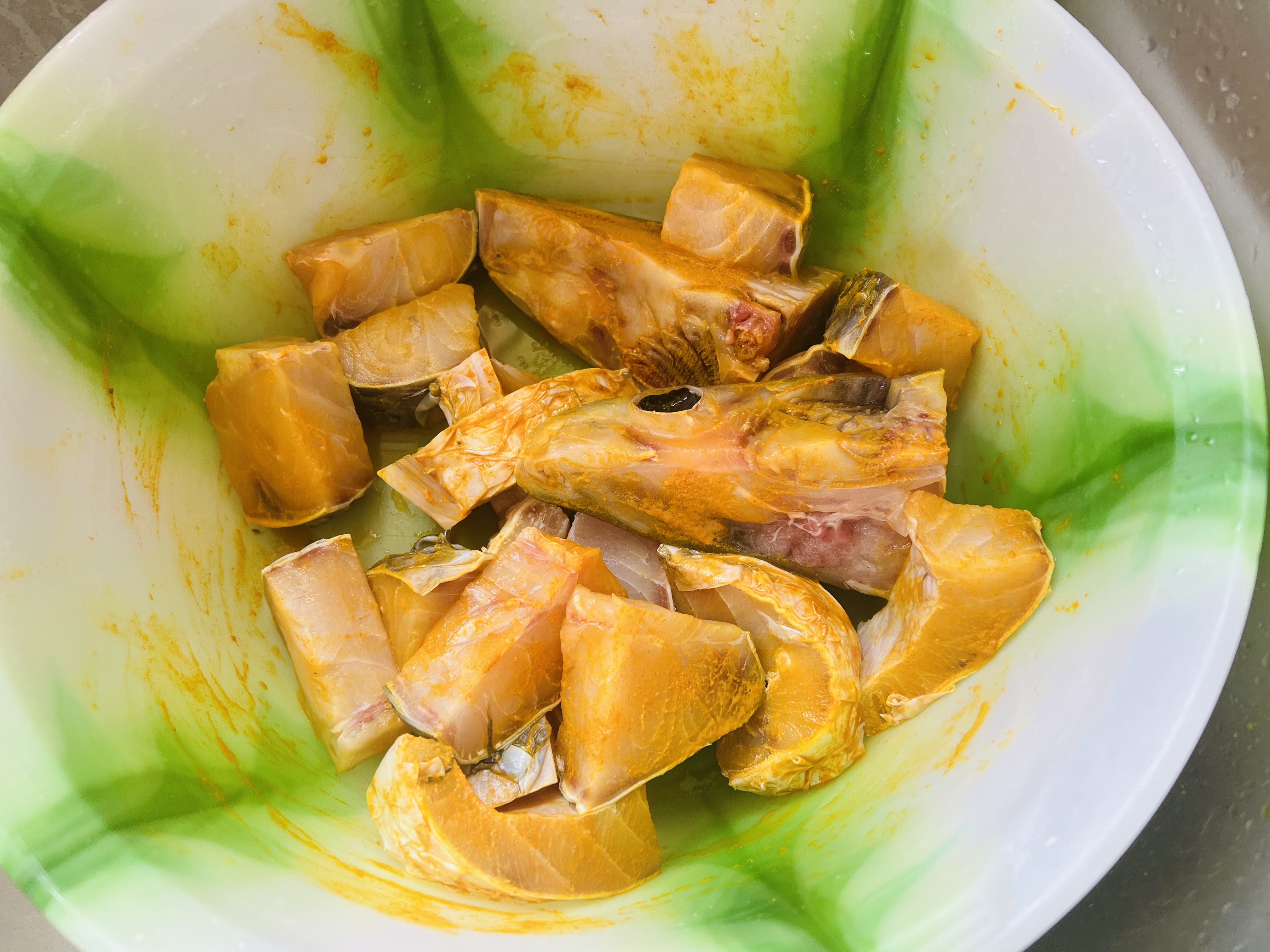 এরপর মাছগুলো ছোট ছোট পিস করে ভালোভাবে ধুয়ে পরিষ্কার করে হলুদ ও লবণ দিয়ে মাখিয়ে রেখেছি তেলে ভাঁজার জন্য।