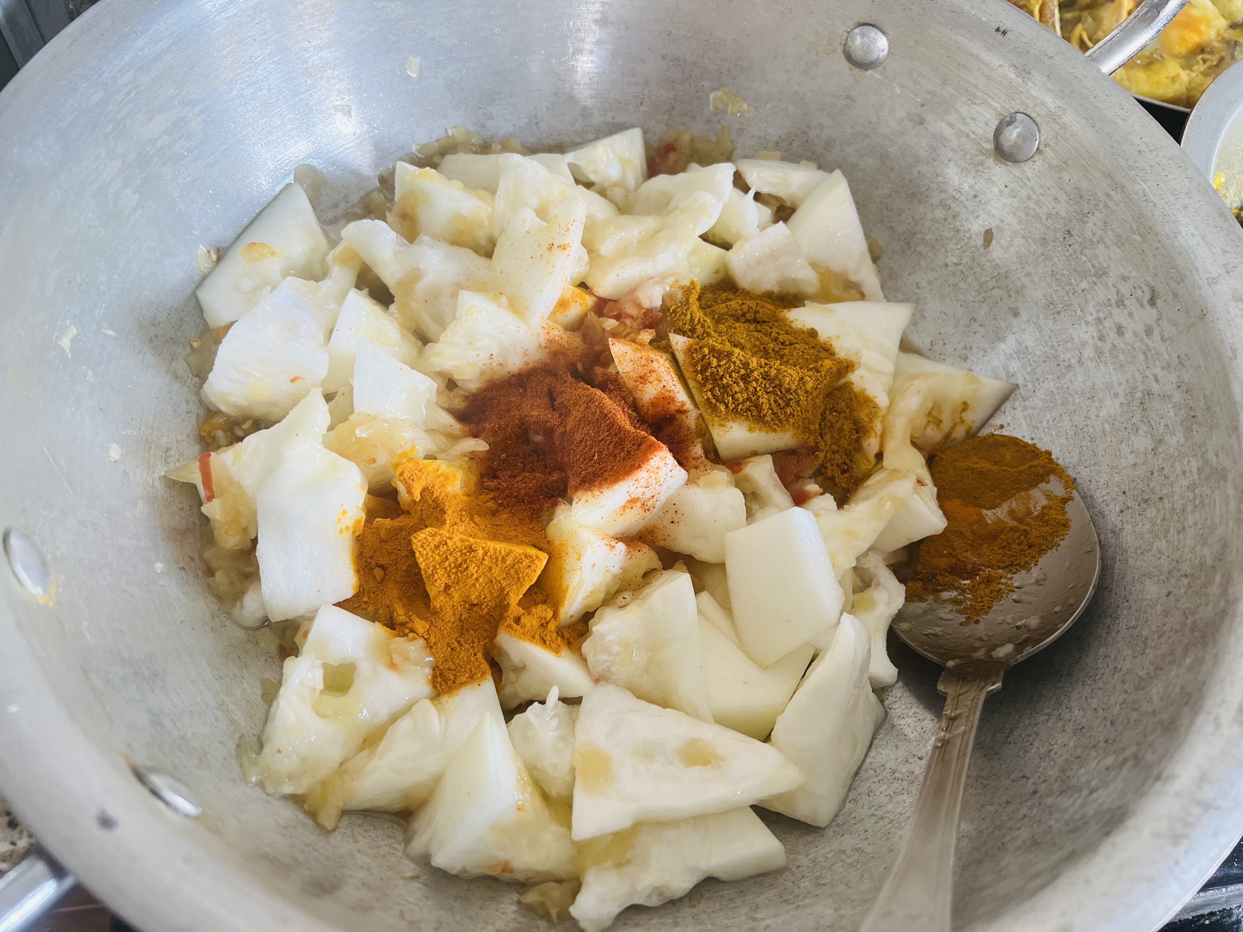 এরপর সব মশলা গুলো দিয়ে লাউগুলো ভালভাবে মাখিয়ে নিয়েছি।