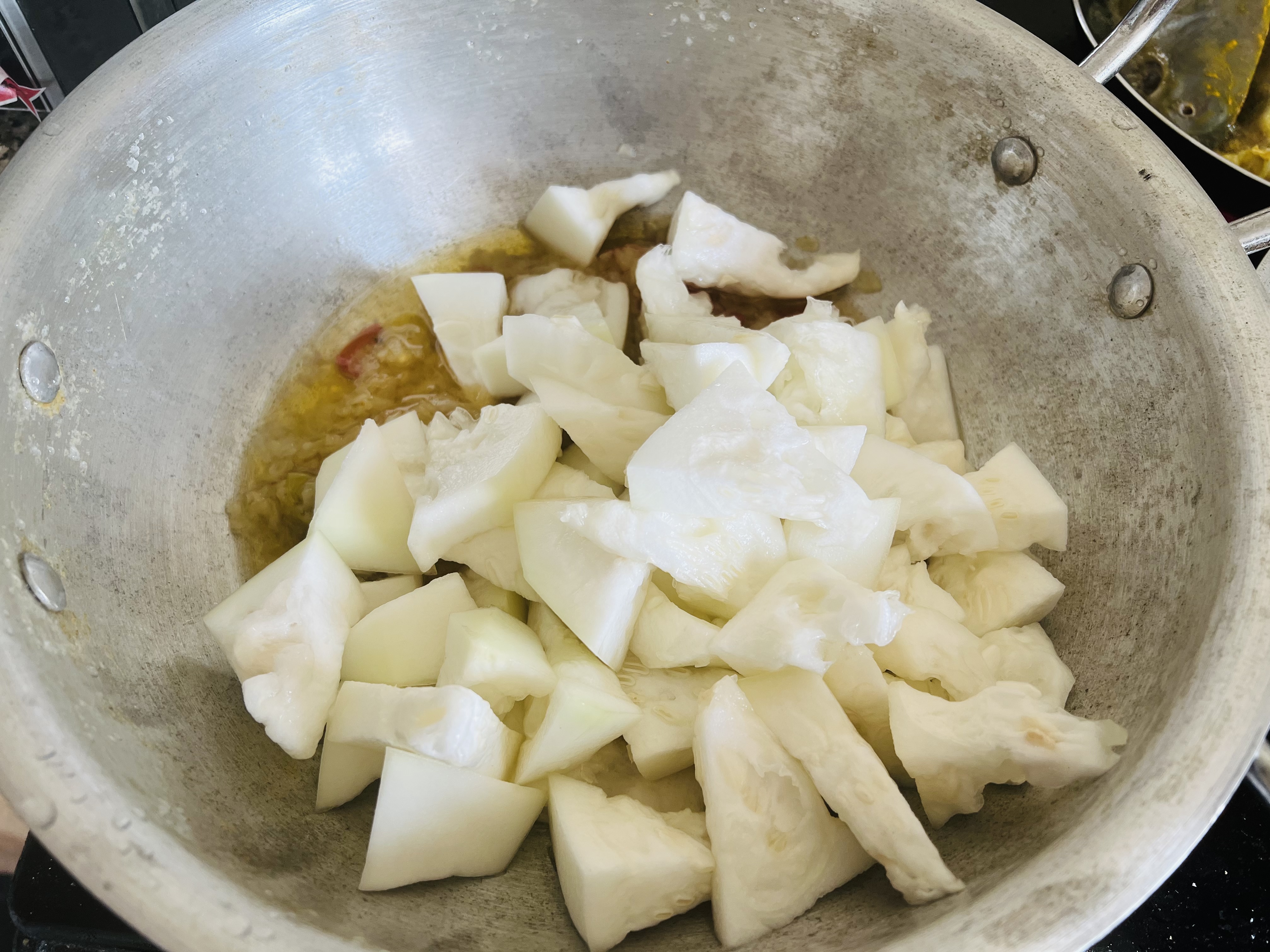 এরপর পেঁয়াজ সিদ্ধ হয়ে গেলে লাউগুলো দিয়ে দিয়েছি।