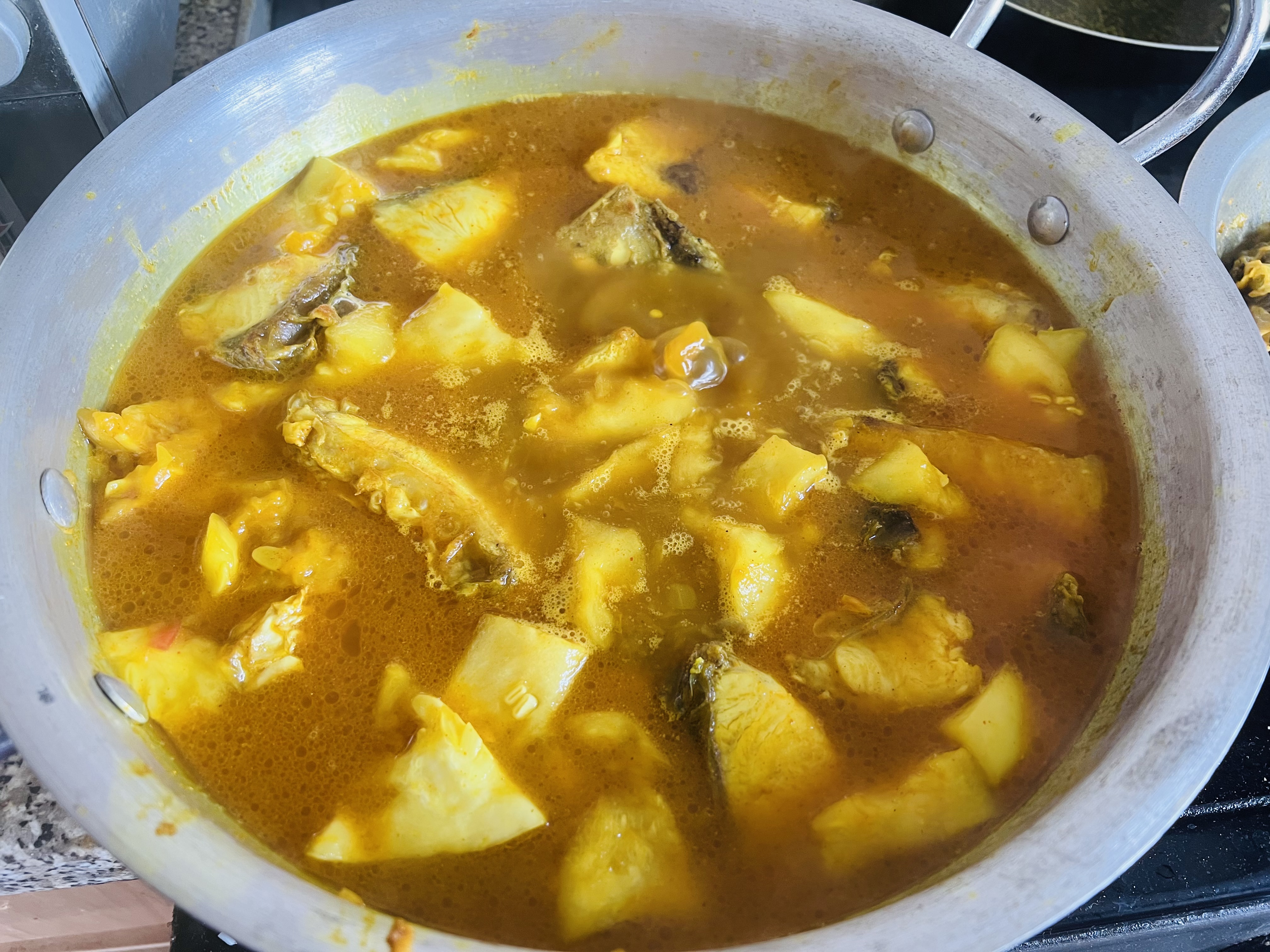 এরপর সামান্য একটু পানি দিয়ে লাউগুলো মসলার সাথে কষিয়ে, ভাজা মাছ গুলো দিয়ে দিয়েছি।