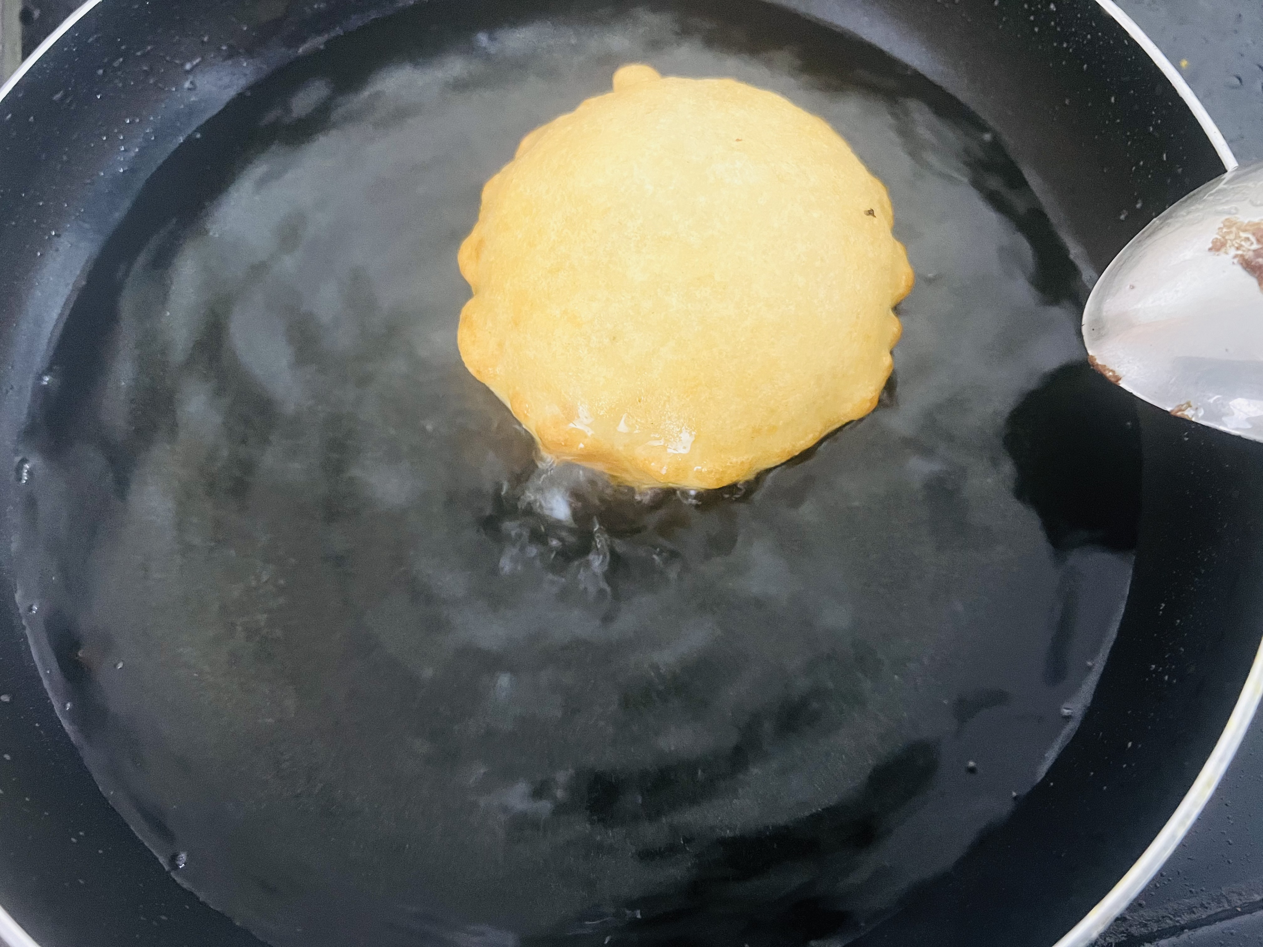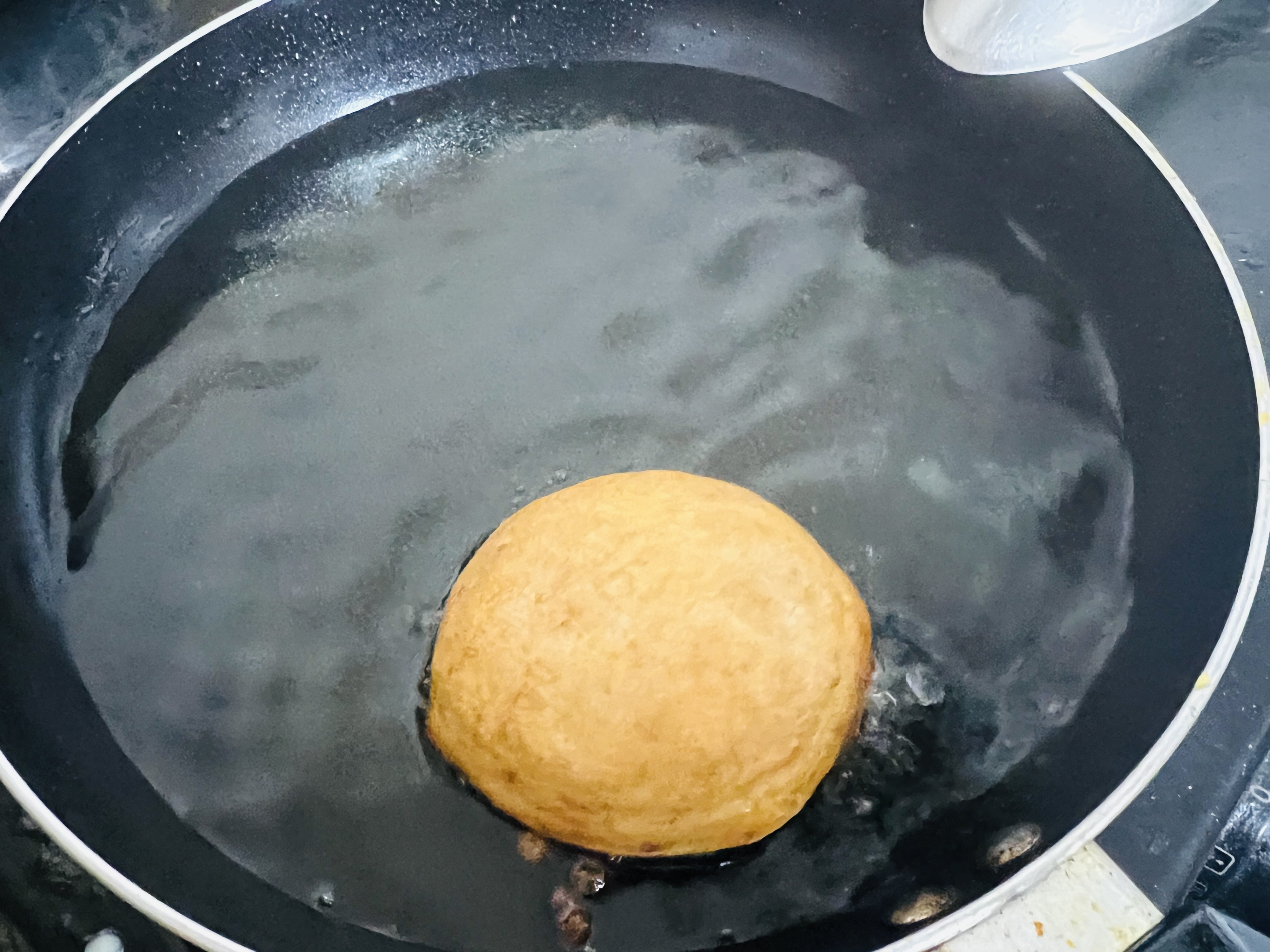 এরপর একটি ফ্রাই প্যানে তেল গরম করে গোল চামচ দিয়ে একটু একটু করে ছেড়েছি। দেখুন কত সুন্দর ফুলে উঠেছে।