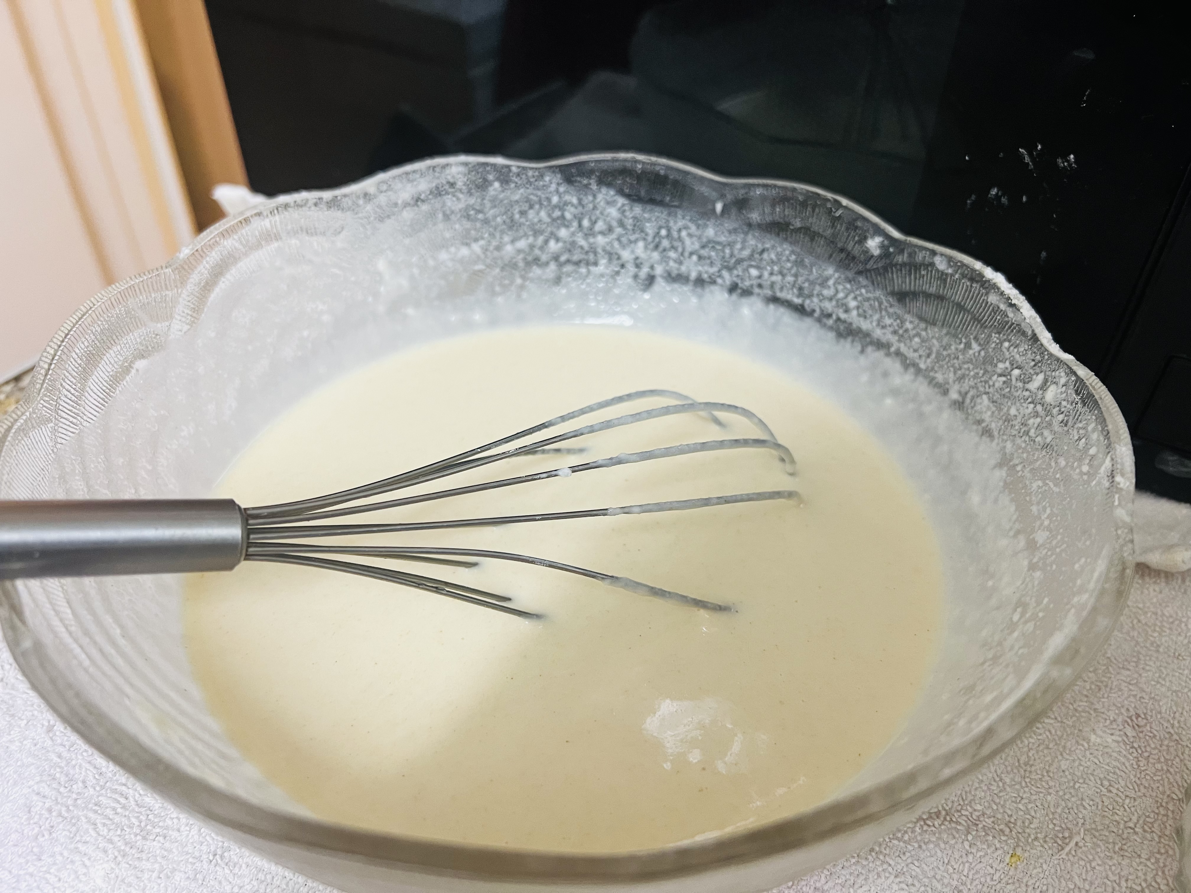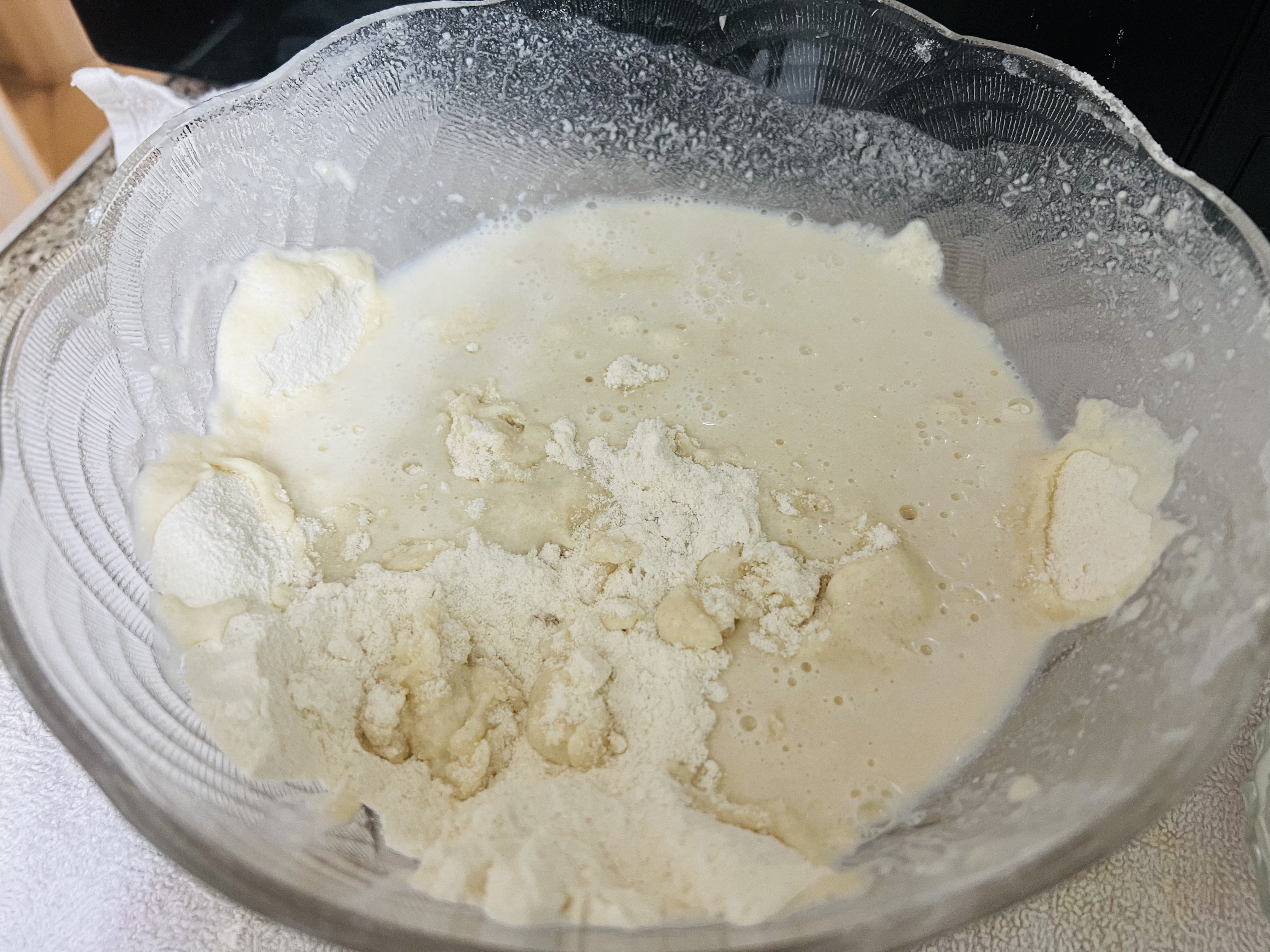 এরপর ধীরে ধীরে পানি যোগ করে একটি বেটার তৈরি করে নিয়েছি। এরপর ১০ মিনিটের জন্য রেস্টে রেখে দিয়েছি।