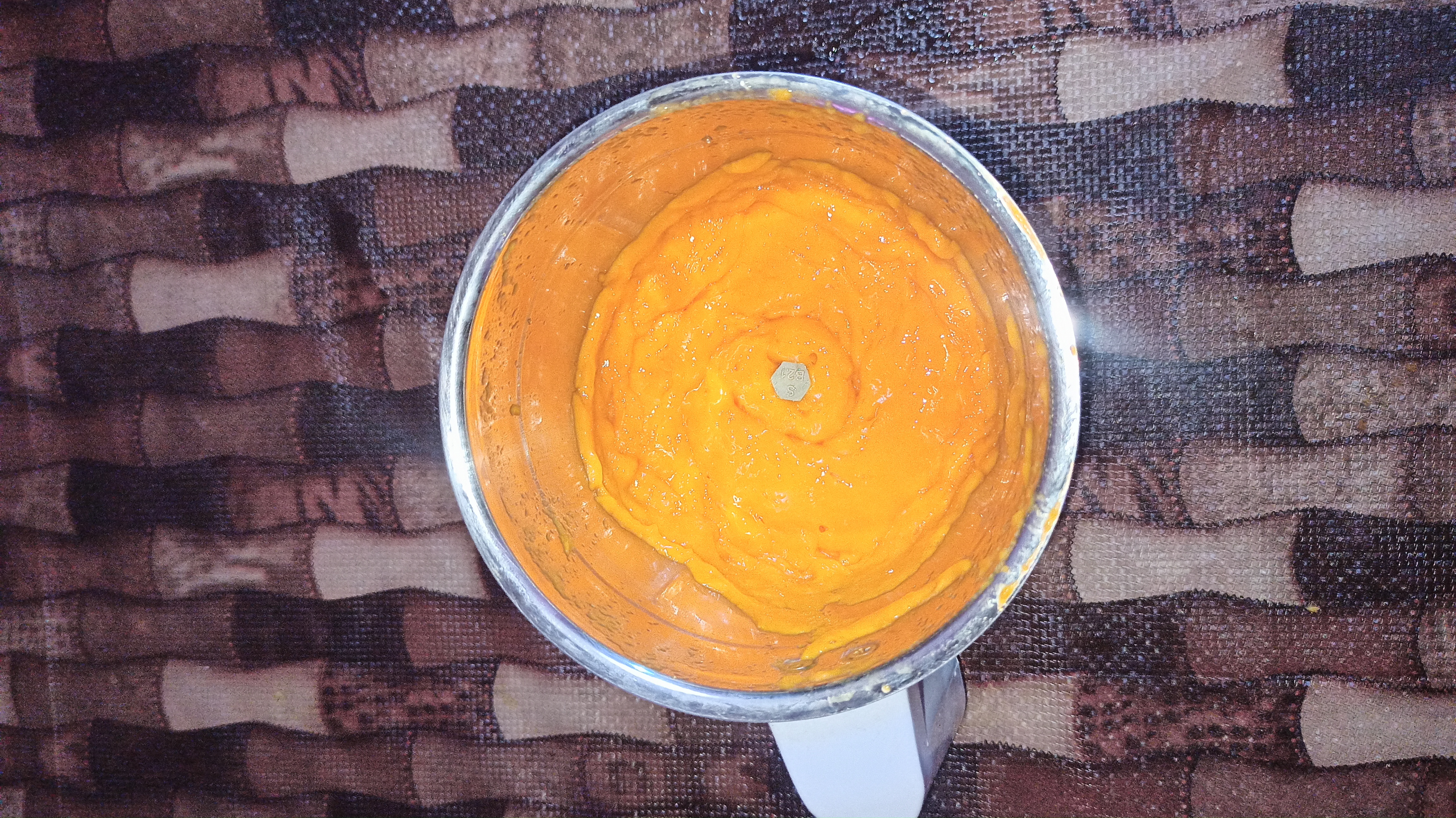 ২. এই পাল্প ব্লেন্ডারে দিয়ে ব্লেন্ড করে নিতে হবে। ব্লেন্ড করে একটা পাত্রে রেখে দিতে হবে।