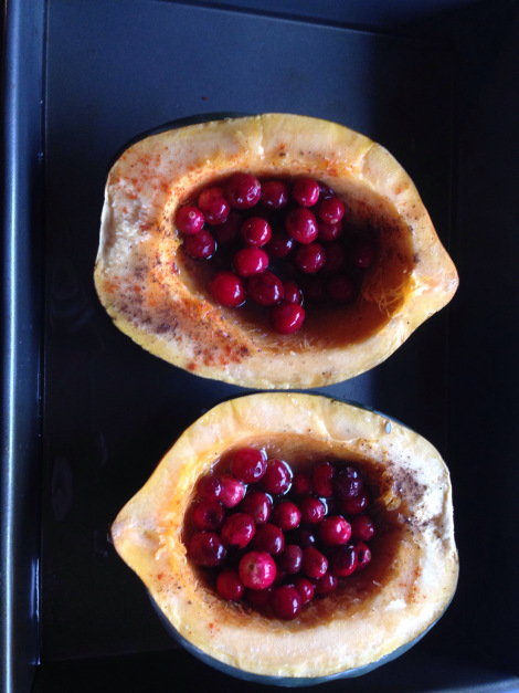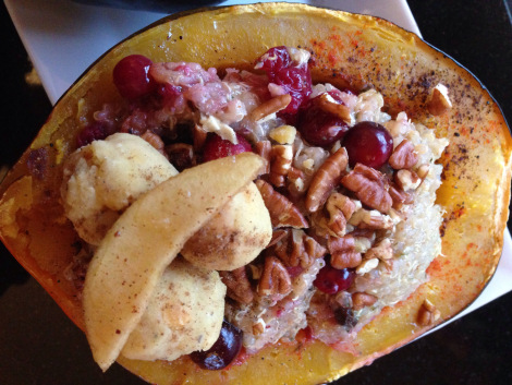 Acorn Squash with cranberry quinoa and lentil balls