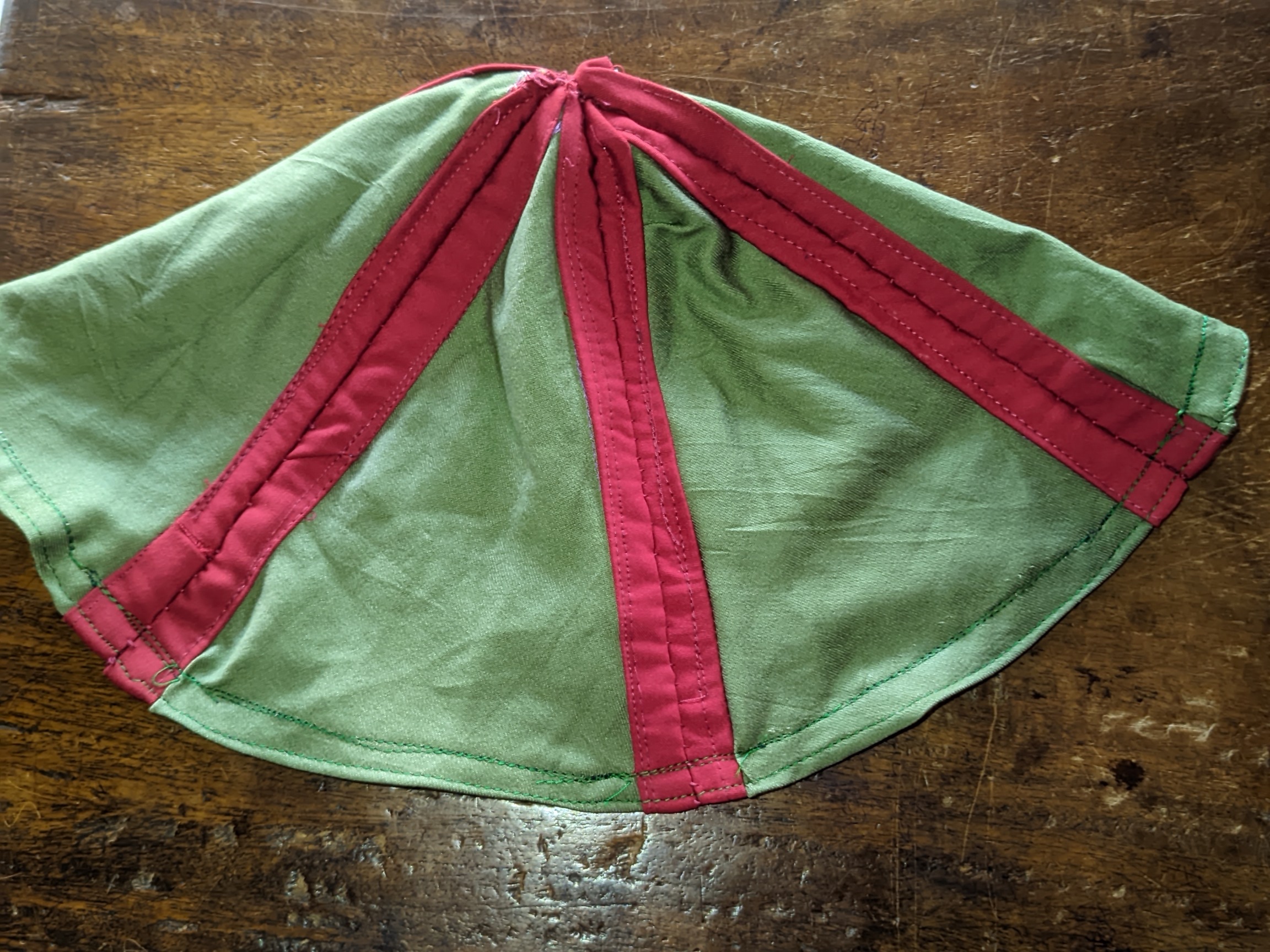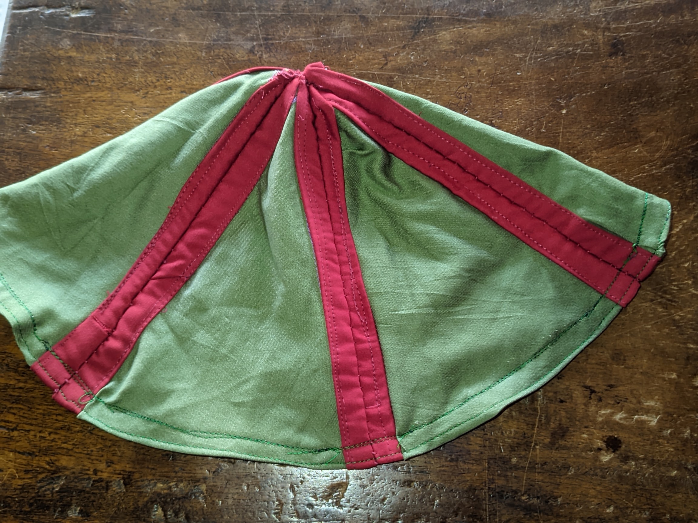 • After joining all 6 pieces on a coffee day, motivation stopped. I continued the next day by using a bias to cover the rough edges up, as you can see. The bias also added a good design to it. It's not as if it couldn't be joined directly, but the bias made that possible so that the interior of the hat can be used if one doesn't want to use the exterior.