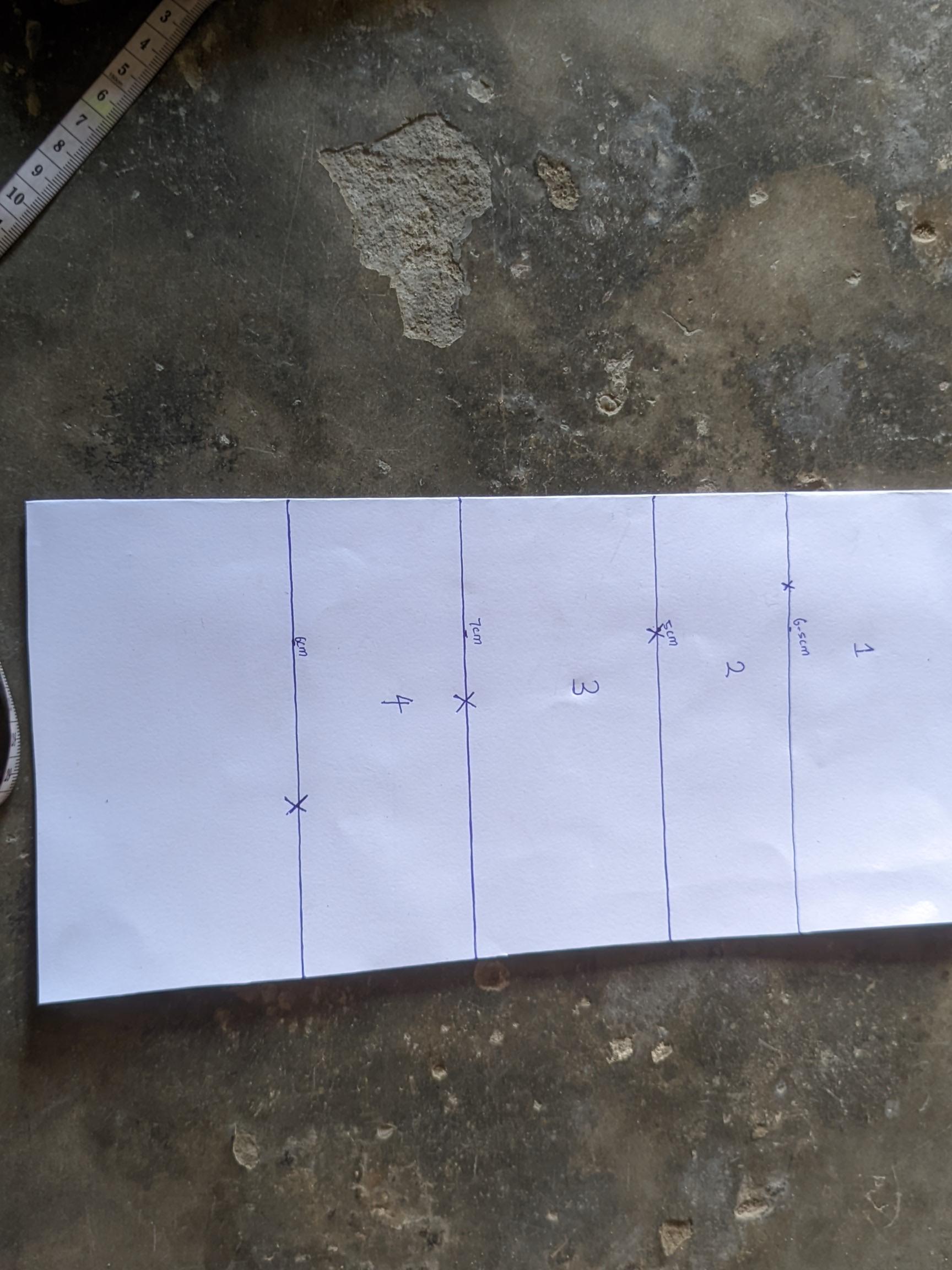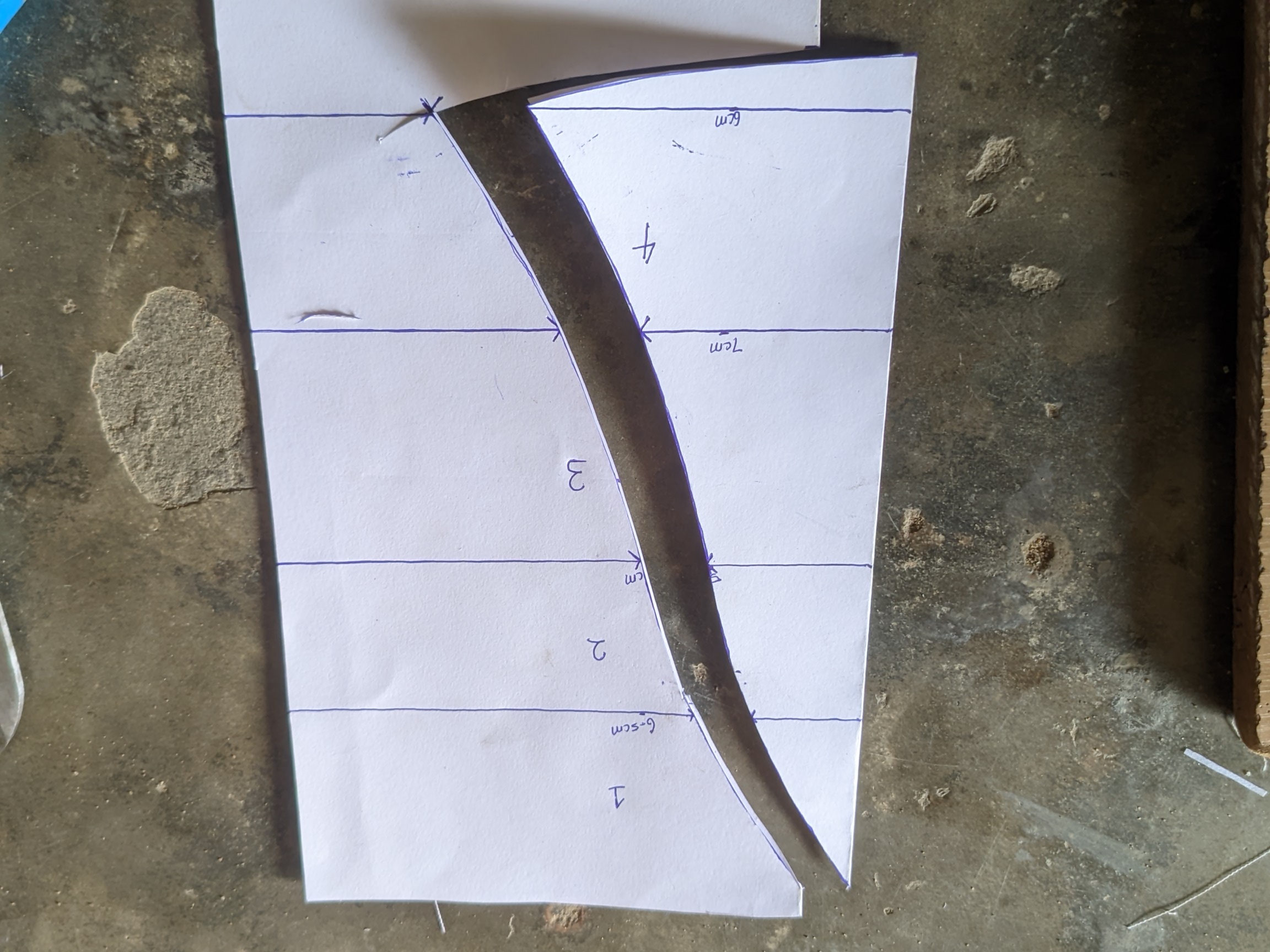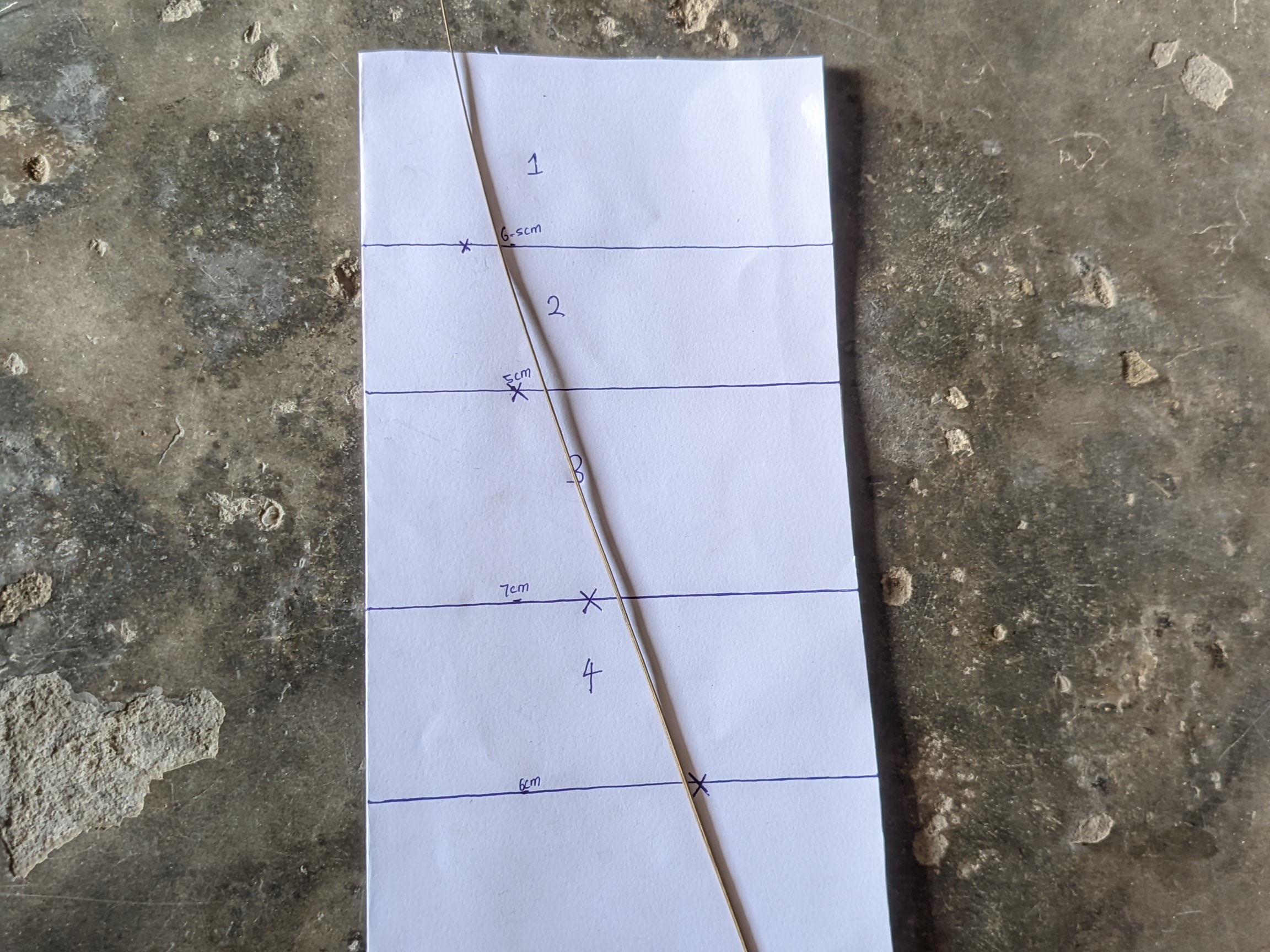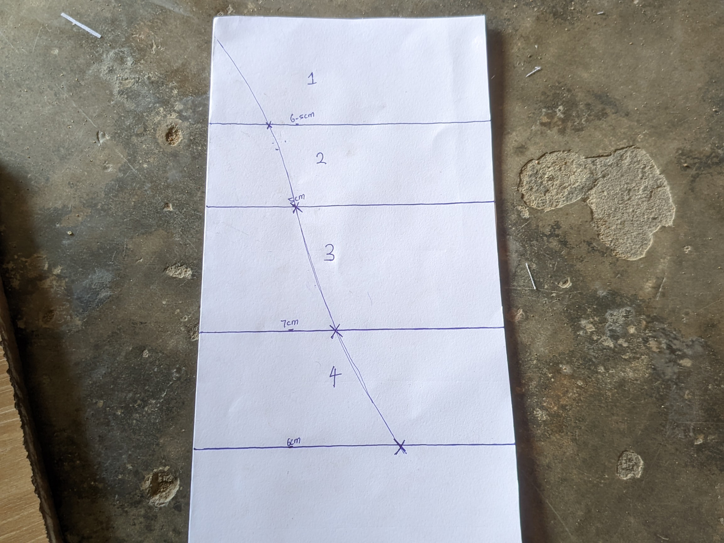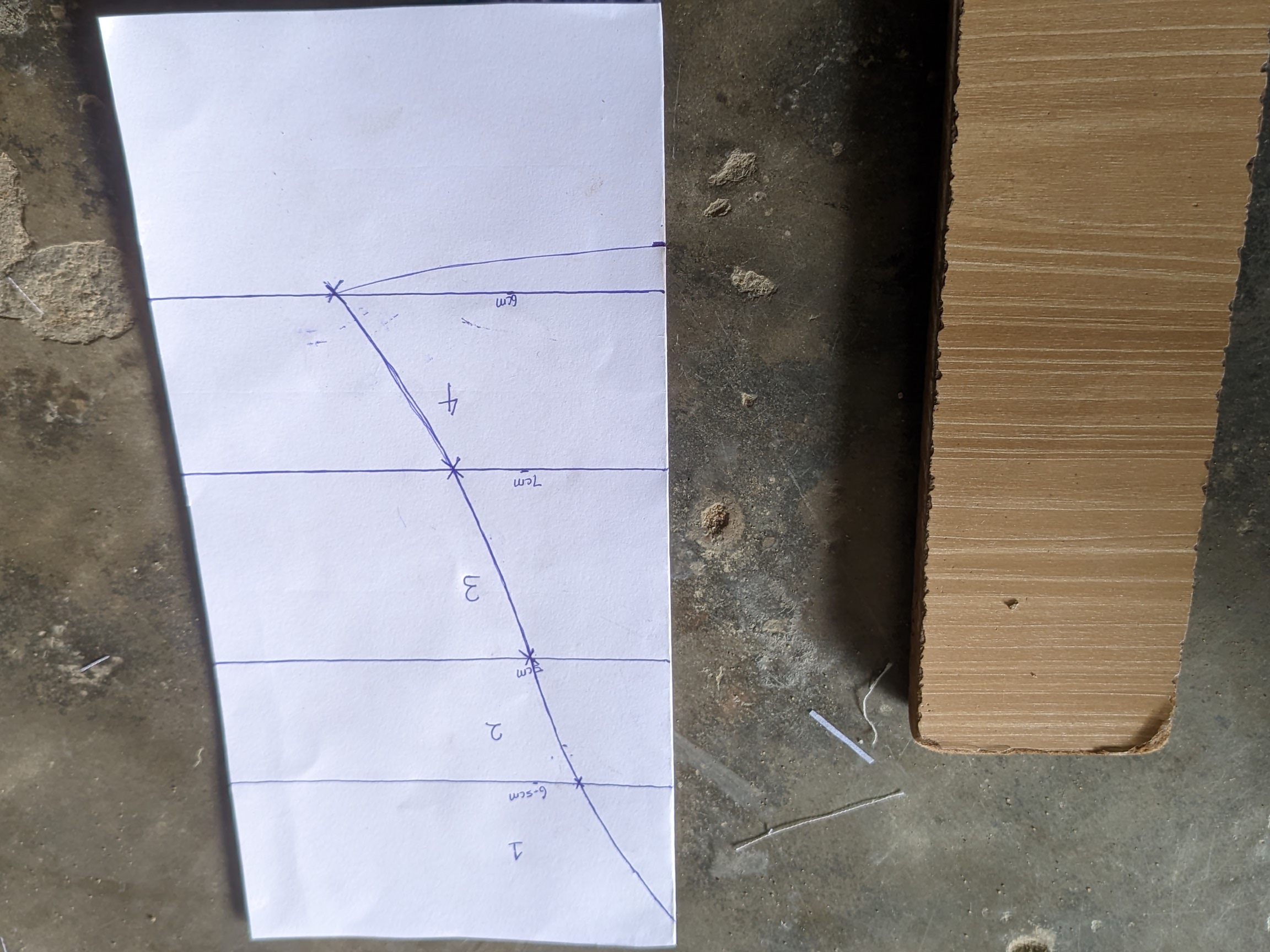 • After marking them vertically, I did it horizontally, and since I don't have a French curve to connect the lines or measurements used, I used a broomstick. This reminded me of what we usually used to draw curves in high school when plotting a mathematics or physics graph. I held the broomstick tight while connecting each X which I marked, and do you know what? It gave it a perfect curve. These are the measurements.