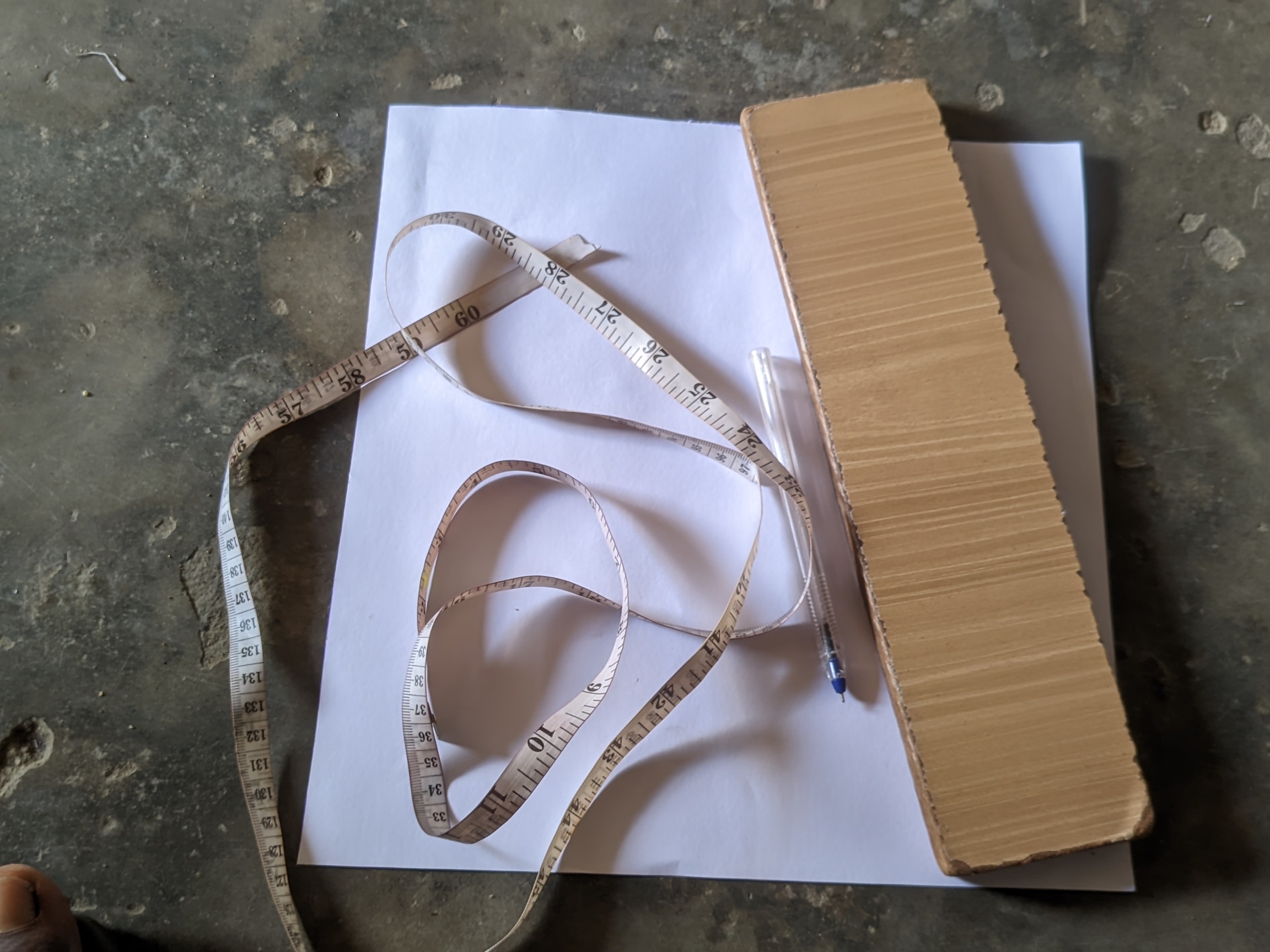 Pen and RulerThese are used for marking the points on our measuring tape to serve as an indication that it's the length and width we want to draft. I used it mostly on the cardboard.