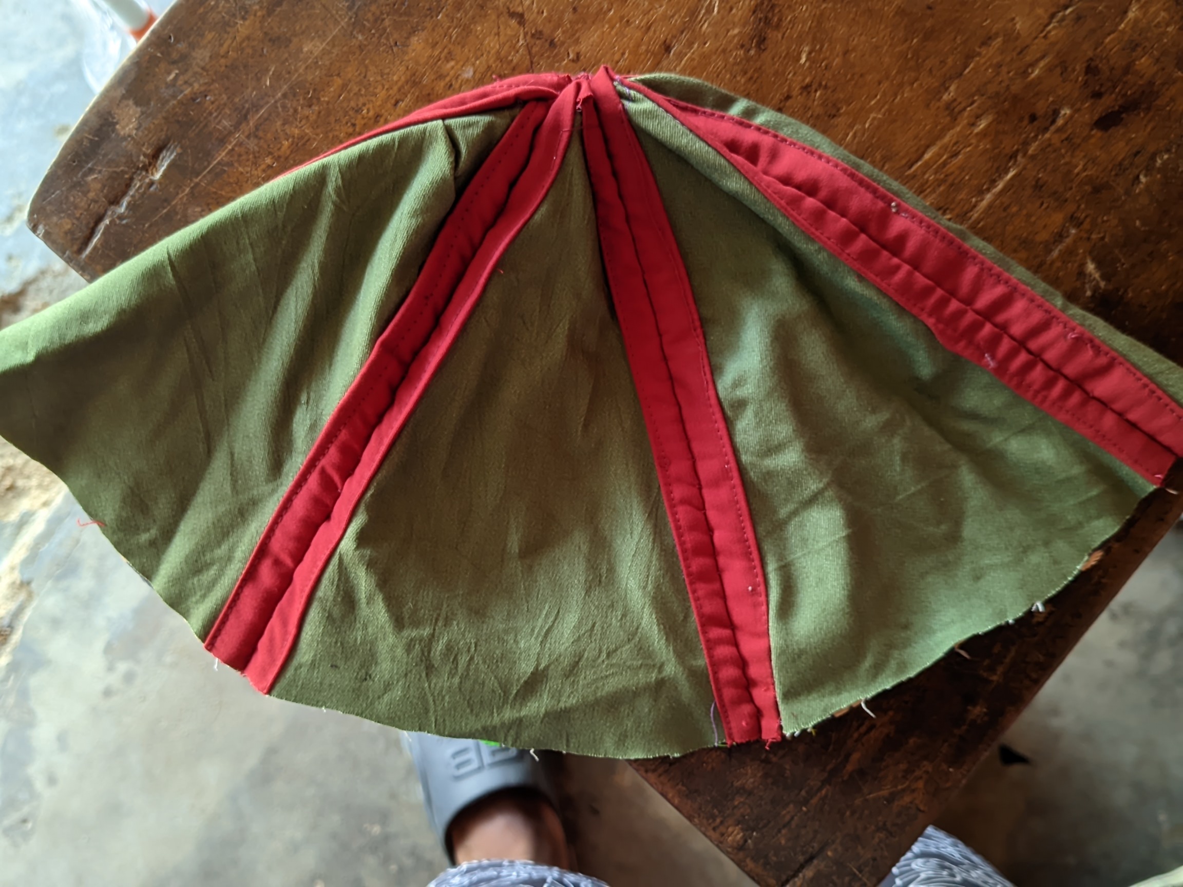 • After connecting the bias on the 6 pieces, I used another day to join them together using hand-sewing stitches. I used a French knot to connect them tightly. After connecting them, motivation ended. I used another day to cover the edges below, and that was how I used one week to sew the foldable hat. It was my first time, and I noticed some errors or mistakes made as to why my hat wasn't standing like the tutor's own. I'll definitely improve on my second time fitting, and I'll tag the tutor to it.