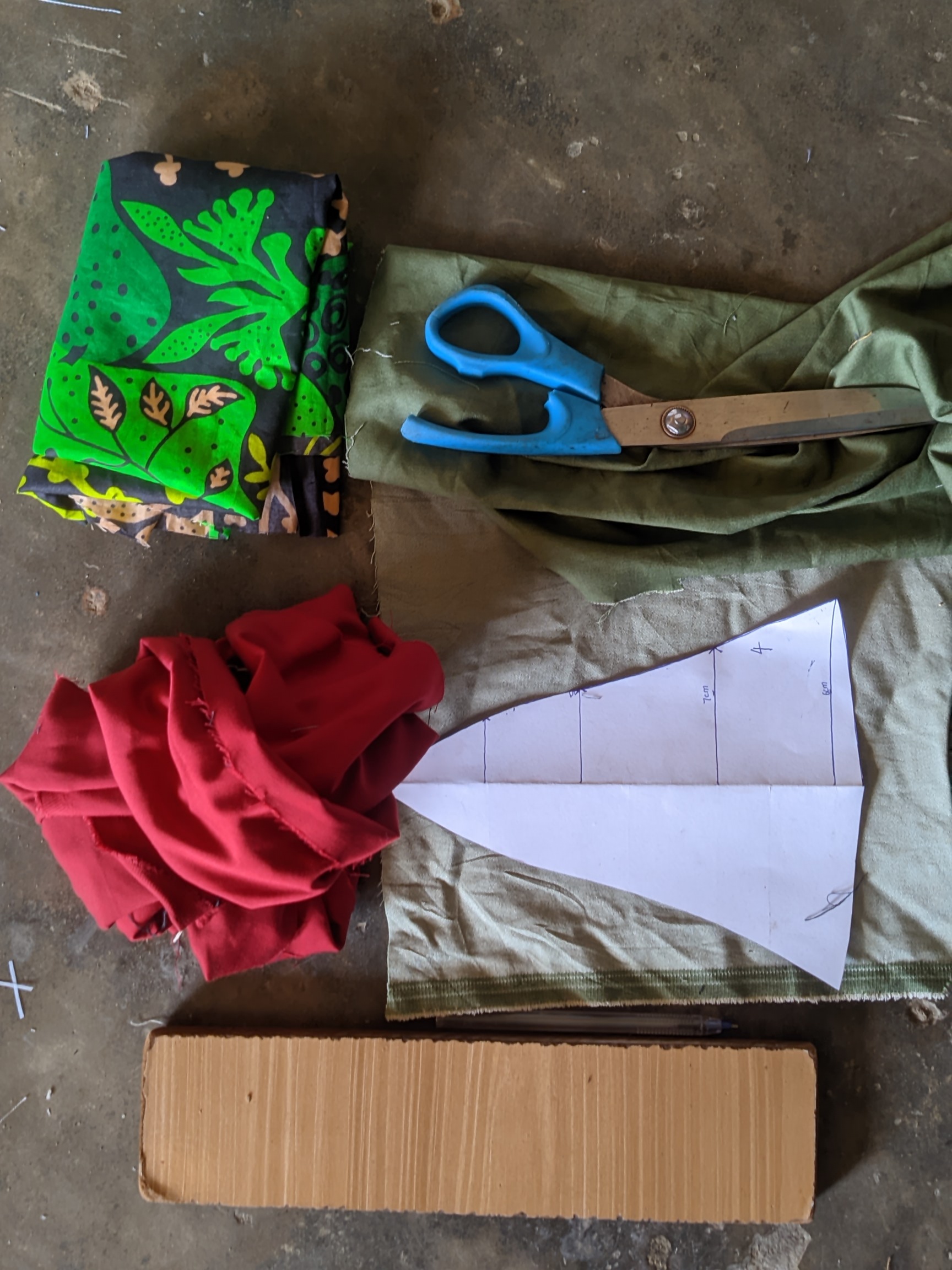 These are the materials I used to show that it got to a complex point that needed endurance, patching up with a hand needle because of the bias. The uses of these materials are stated below because this is actually the first time we used cardboard to draw the design of the cap with ease.