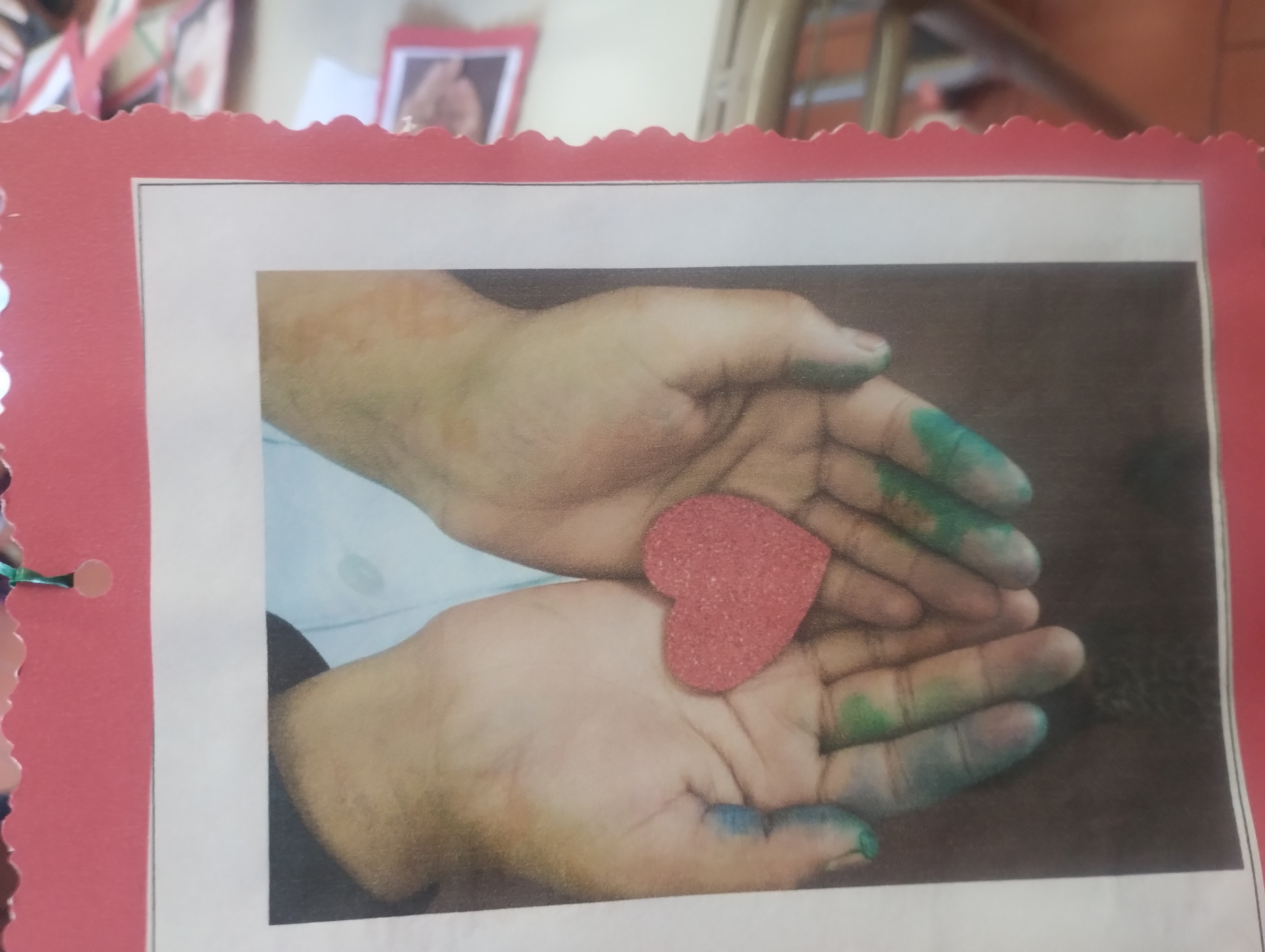 foto a una foto de las manitos de mi hijo dándome su corazón ❤️ obra de arte para mí.