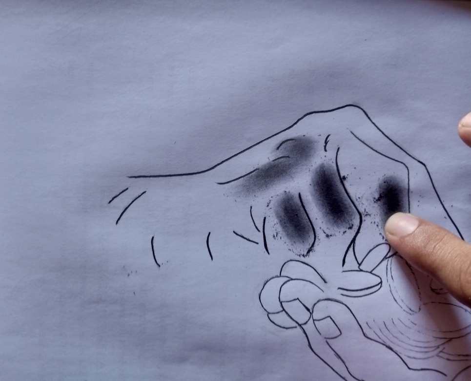 Paso 4: Aplico la técnica de difuminado con cenizas de grafito, depende de las áreas en mi dibujo el lápiz que utilizaré será diferente en tono de claros y oscuros al momento de pintar.