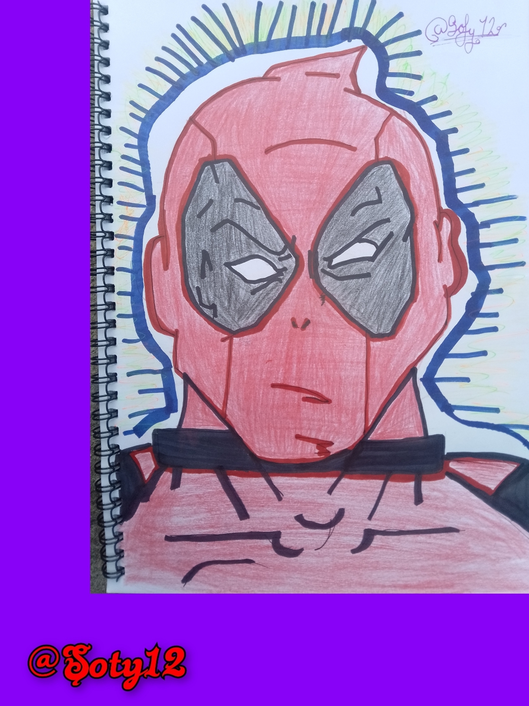 Hola buenas tardes queridos amigos de Recreative-art hoy le voy a mostrar cómo dibujo a Deadpool, quise hacer este dibujo por la película se hizo muy famosa sacaron hasta un baile de eso y bueno hoy quise dibujar su rostro como ven a mí me gusta mucho las películas de héroes al igual que mi mamá @rankari6 junto a mi hermanito El pequeño Samuel somos fanáticos de los Avengers nos encantan sus películas porque ya que tienen drama y tienen demasiada pero mucha acción.