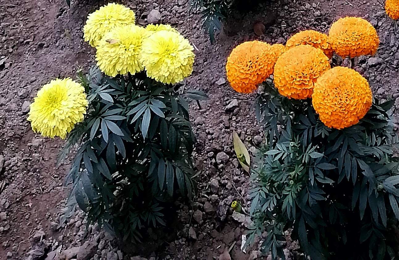 White yellow and raw yellow pile flowers