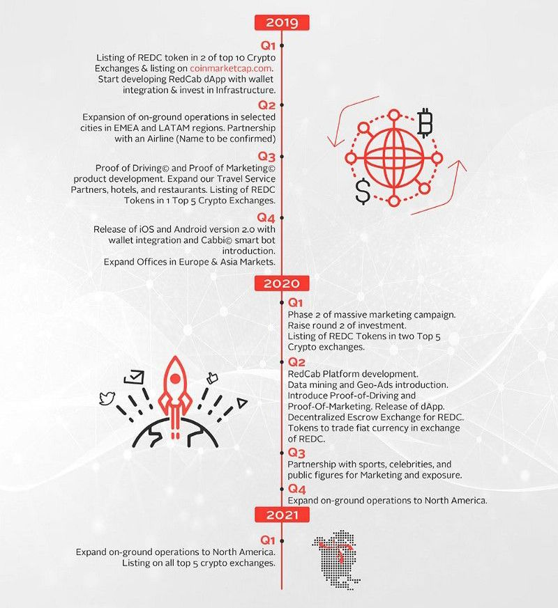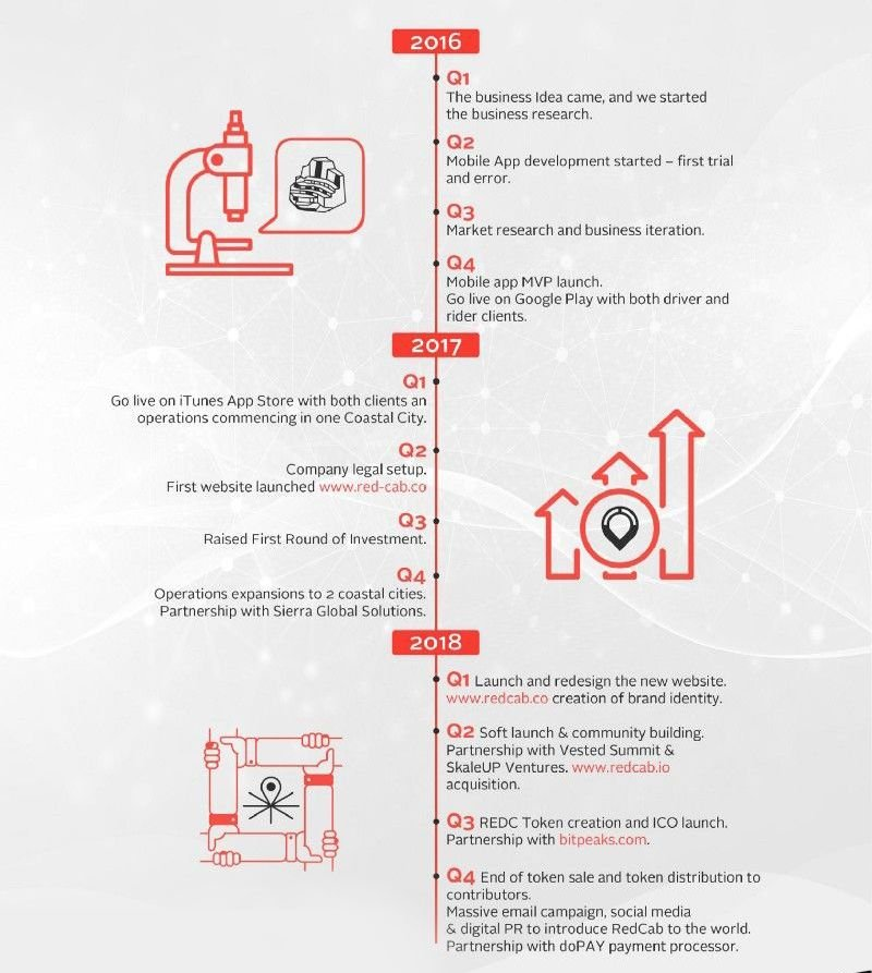 REDCAB LLC. The company was founded to offers decentralized peer-to-peer transportation solutions to individuals. Leverage the power of Blockchain technology and unique business models for a transparent, affordable and innovative future. Founded in 2016, and launched in 2017 with a concrete roadmap for the future of peer-to-peer transportation services. Proof of Driving and Proof of Marketing Concept, AI Powered road assistant, Geo Ads for monetization, and a strong portfolio of field operations in a very short time.