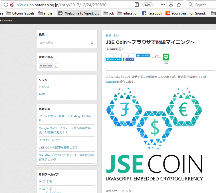 Browser based crypto mining - JSEcoin! JSE Coin〜ブラウザで簡単マイニング〜