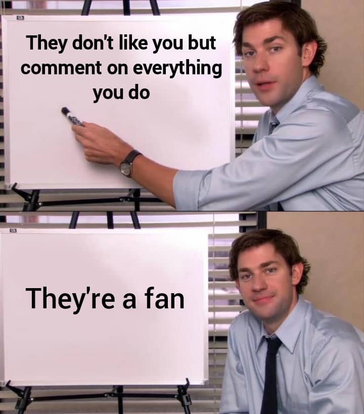 When someone doesn't like you, you'd think they'd ignore you but actually the opposite happens a lot. Those who tend to comment on every single thing you do with all the negative remarks they can creatively come up with, you really do have their full attention. They're watching you closely while you're just minding your own business.