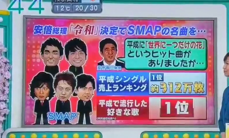 大意就是,他希望建設一個充滿希望的日本,讓年青人對未來抱著希望的同時,能像花朵般盛放。安倍在解釋新年號的由來時,竟然提到了已解散的國民級偶像組合SMAP的經典金曲,足見政府官員夠貼地,嘗試用流行文化來跟年青人溝通(雖然迷SMAP的已經不再年青了)。