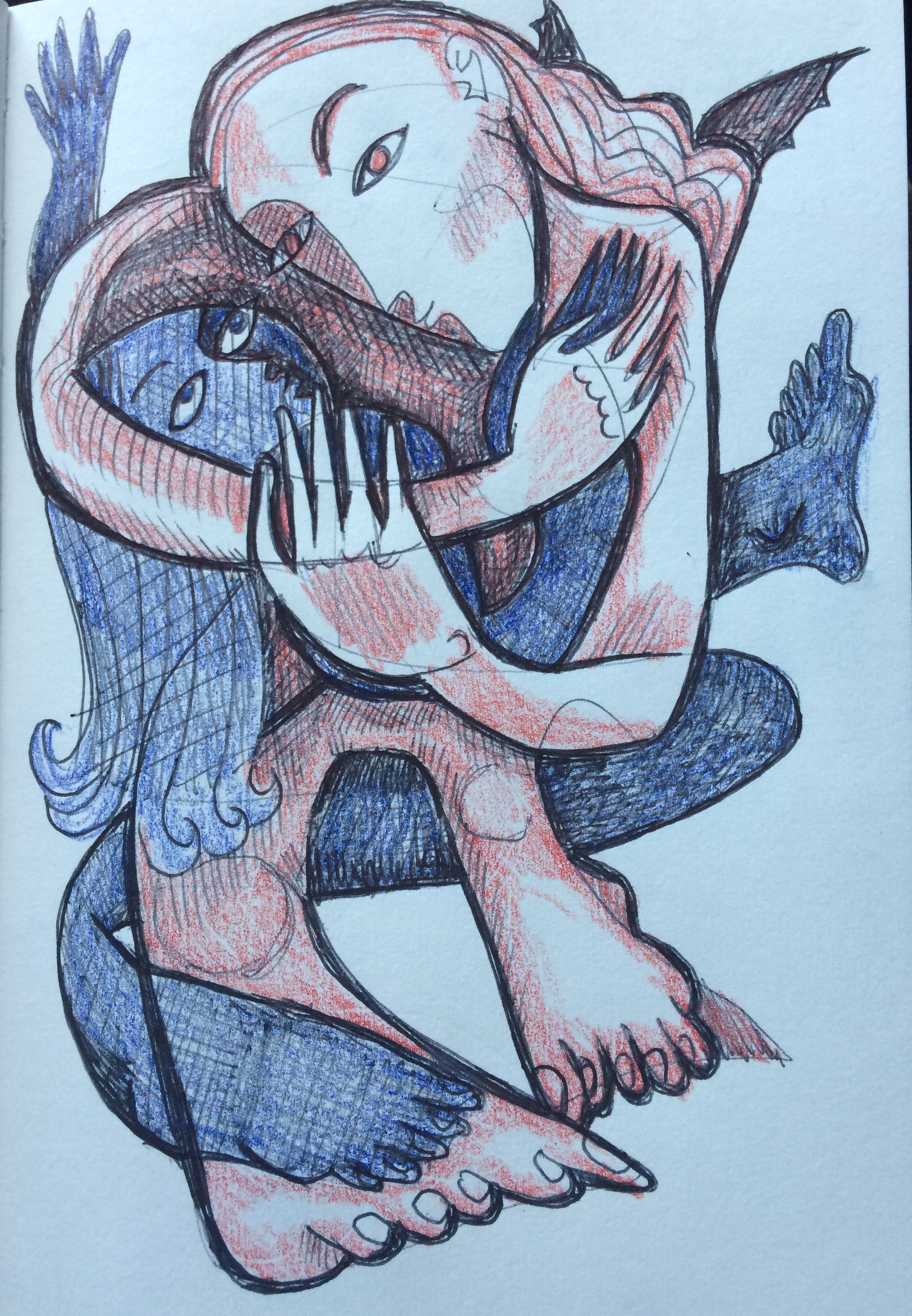 The drawing shows that they were squeezing me, and I was always trying to escape.