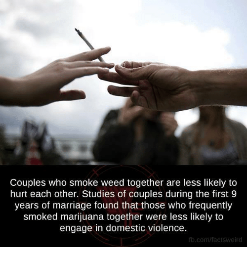 One particular study published in the Psychology of Addictive Behaviors online found that couples who smoked weed together experienced fewer incidents of domestic violence. The study evaluated 634 couples during the first nine years of marriage and found that marijuana use was inversely proportional to domestic abuse. The higher the rate of marijuana use among partners, the lower the instance of domestic violence (and vice versa).