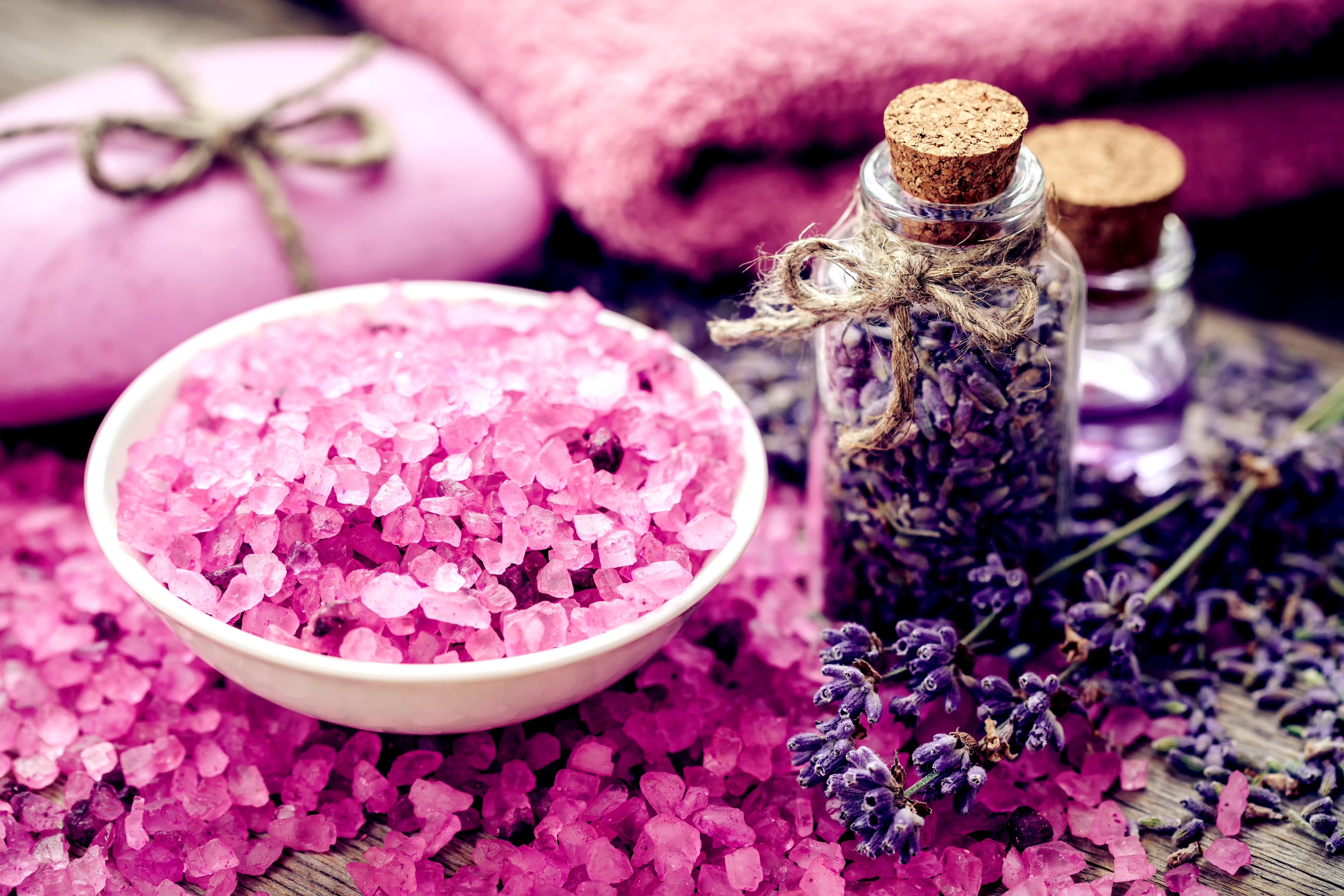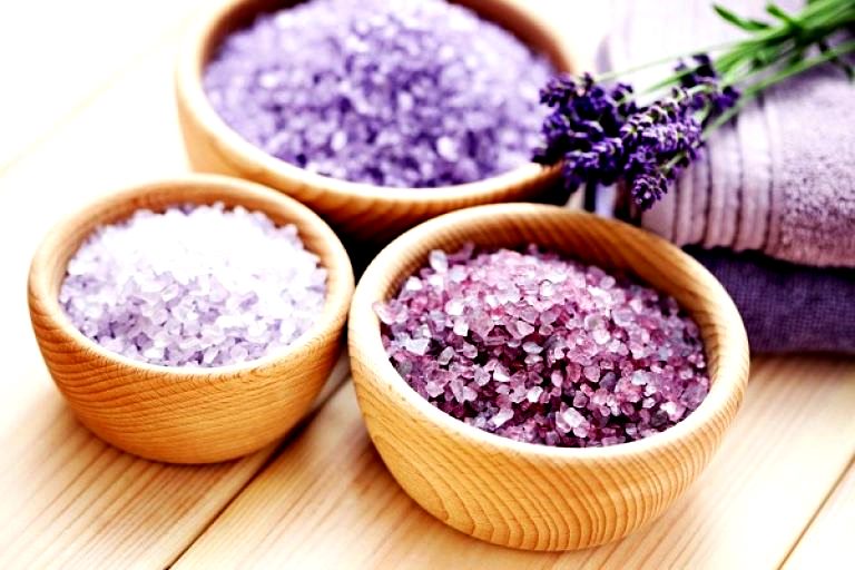 Lavender essential oil. Put 5-9 drops on salt before putting salt in the water.
