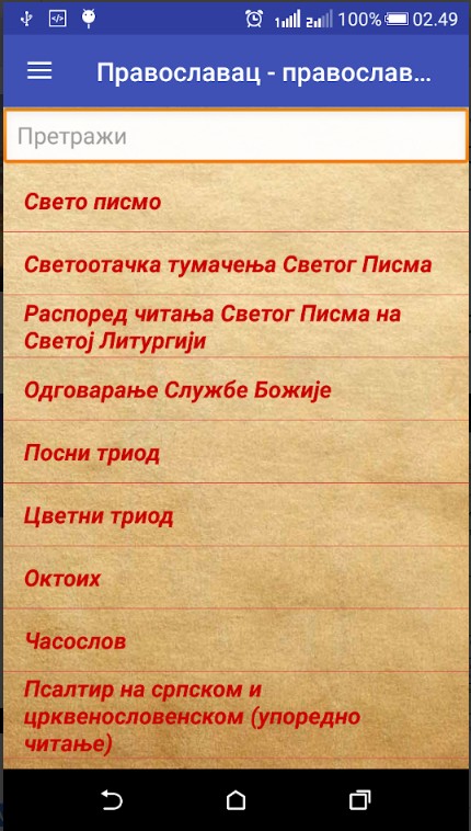 - Програм такође садржи православни црквени календар са датумима постова у току целе године и житије светих - охридски пролог за сваки дан у години. У житијима светих описана су живот и дела светитеља православне Цркве.