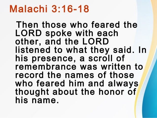 16)Then those who feared the Lord talked with each other, and the Lord listened and heard. A scroll of remembrance was written in his presence concerning those who feared the Lord and honored his name.