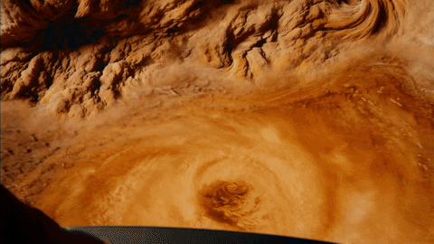 - With an absence of a solid surface to slow the winds, storms rage for years.