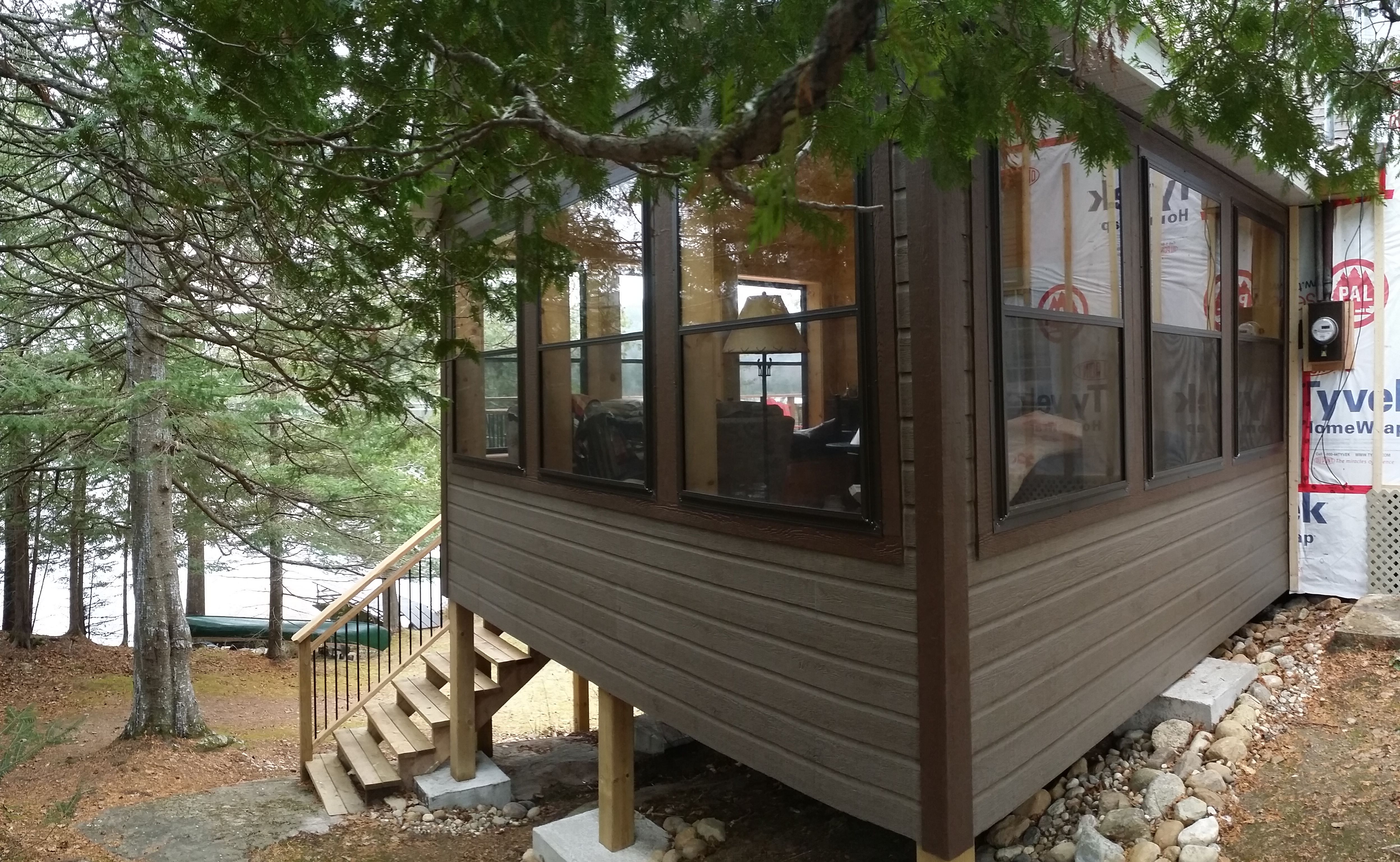 Hey guys! I visited a job we had completed back in august and it looked so good i had to share it with you guys! Tsis is a 4 season sunroom 16x16 right on lac pemichangan in eastern quebec. Custom pine everything from floor to ceiling.Beautiful place for a beautiful cabin. We are currently finishing the rest of the home with the same can exel siding
