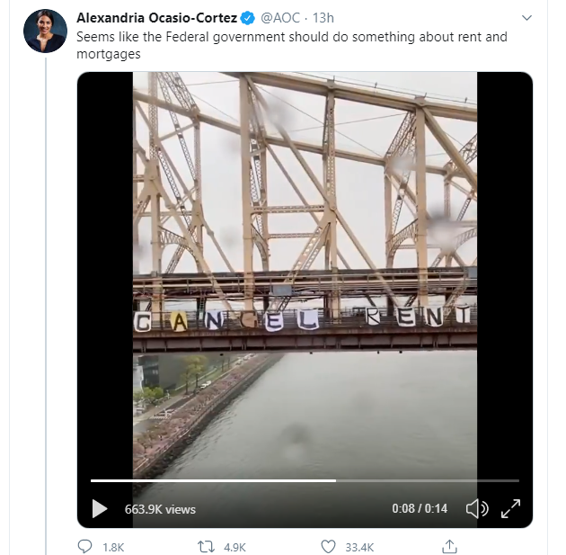 They're worried, and "cancel rent" is just an emotional statement that won't actually happen. And people like AOC act as their voice for her own gain. I get it. Let them Tweet.