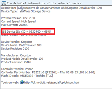 Utilizaremos el VID y PID para seleccionar la herramienta que usaremos en los pasos siguientes.
