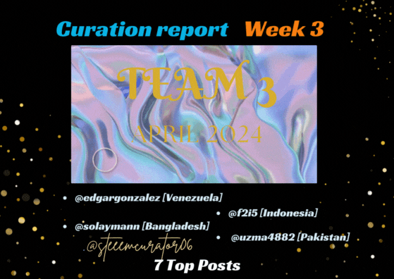 I hope everyone will be fine here. By the grace of Almighty's Allah, We are also good and delightful to share with you weekly report Team [week3] April 2024 on the behalf of my cooperative and well organized team. It was mine first experienced and going to share my first report of curation with you all. It was great learning and experience worked to my seniors. I would like to appreciate their cooperation to complete our Week3.