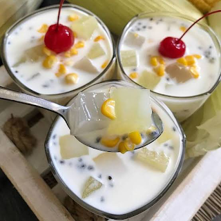 b. Campur dan aduk semua bahan ke dalam gelas , dan Es Jagung siap di sajikan