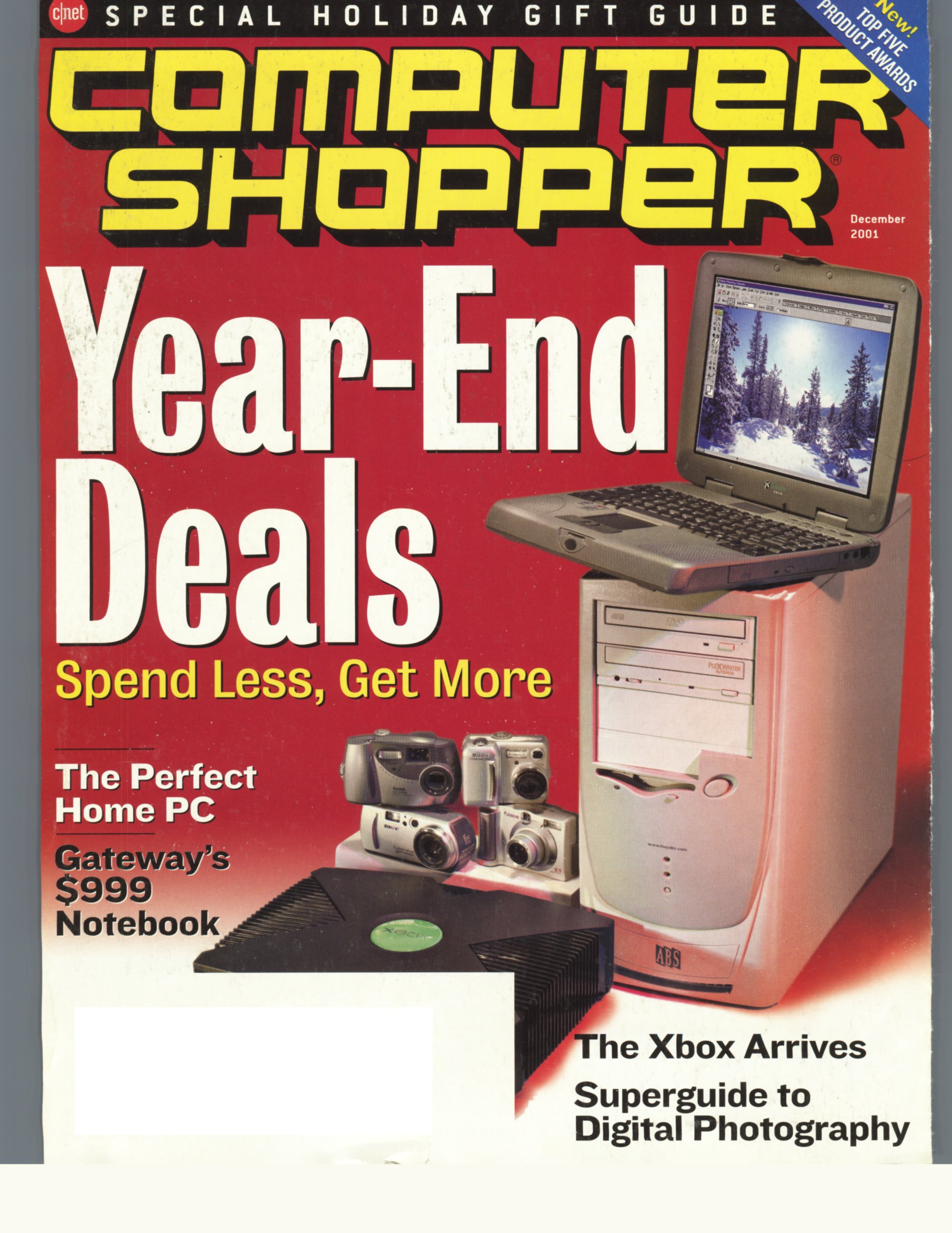 For a large portion of its life throughout the 1980s and most of the 1990s, Computer Shopper was a mammoth publication often reaching in the neighborhood of 1,000 pages. By 2001, while not exactly small, it was nowhere near what it used to be in terms of size. The December 2001 issue weighs in at less than 250 pages and includes: