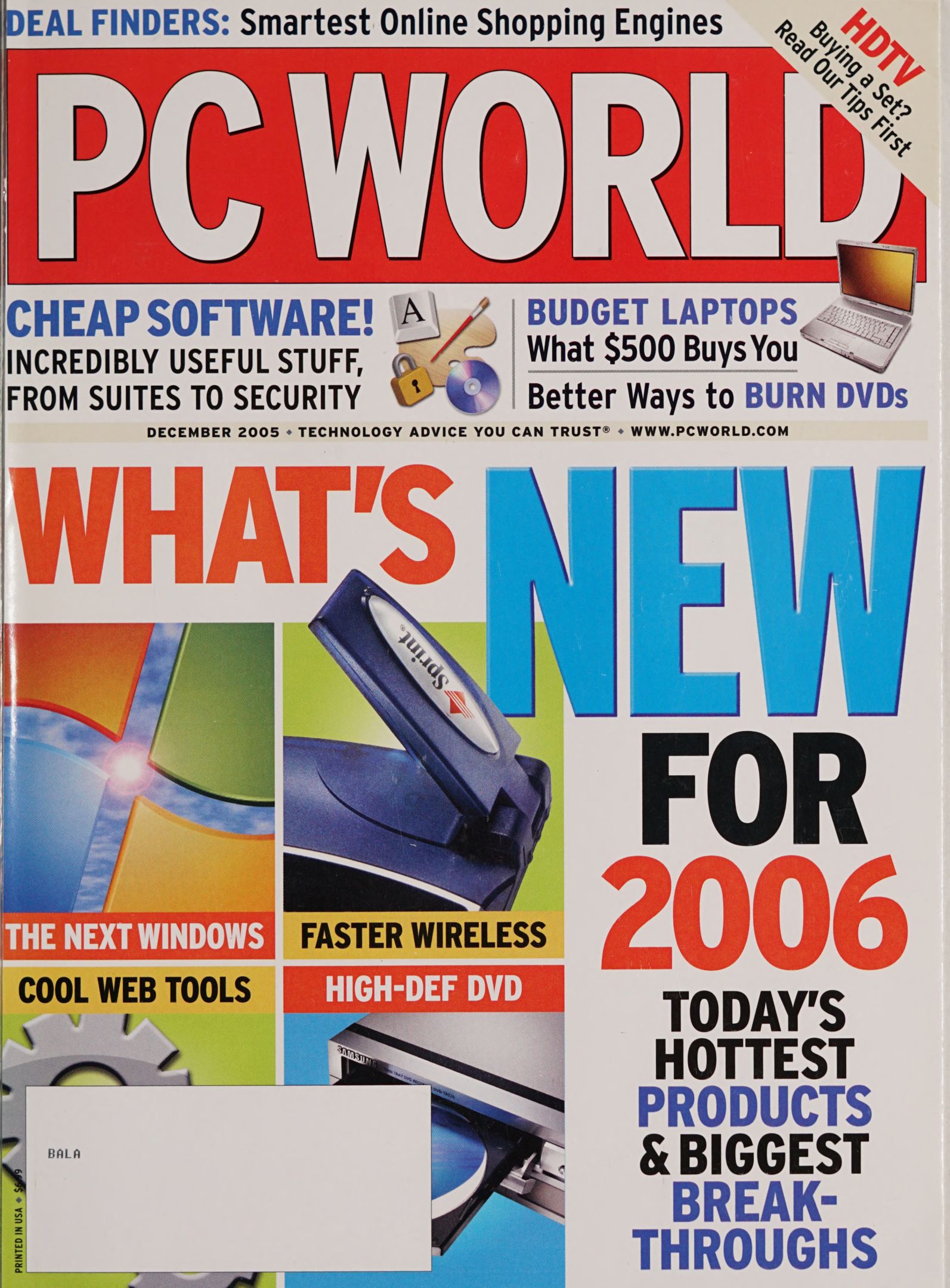 At one time, you could find PC World on the shelves of every book store and in many grocery stores and other places that carried magazines. Sadly, it disappeared with almost every other computer related magazine (and most magazines in general for that matter). The December 2005 issue includes: