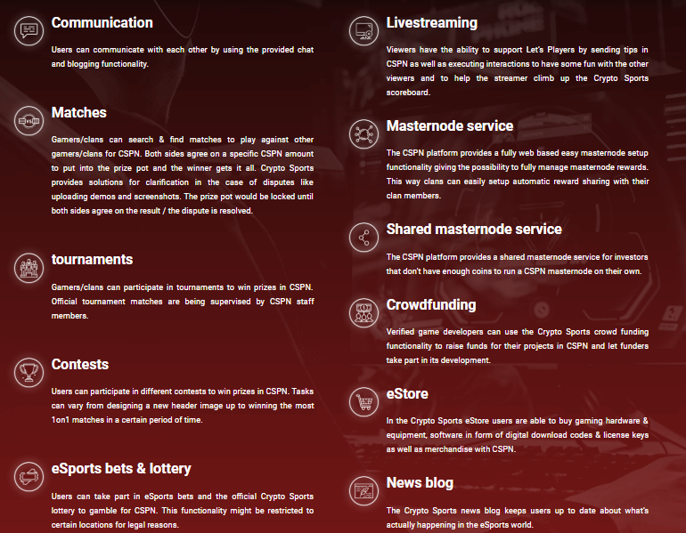 Crypto Sports builds a bridge between eSports and the crypto world, offering gamers and developers innovative ways to connect and provide opportunities for every gamer, wether casual or professional, to make money by doing what they love, thanks to the Crypto Sports Network and the cryptocurrency, CSPN.