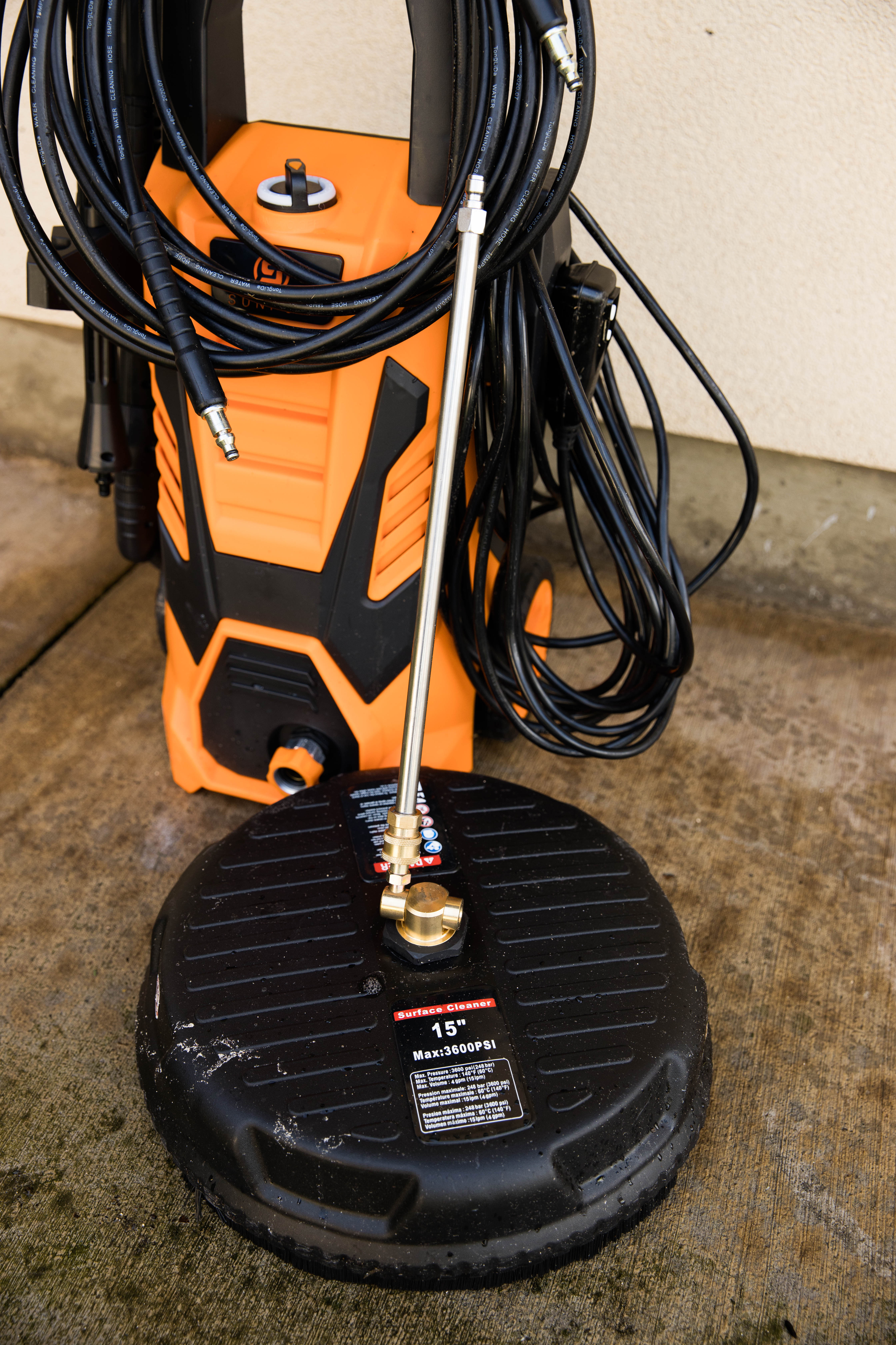 - When you couple this with a circular pressure washer (surface cleaner) attachment head (find here - http://simplypractical.net/sunpow-3000psi-electric-pressure-washer/), you can easily clean large flat spaces like driveways and patios with ease.