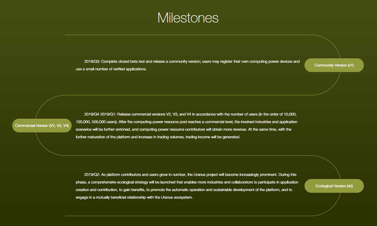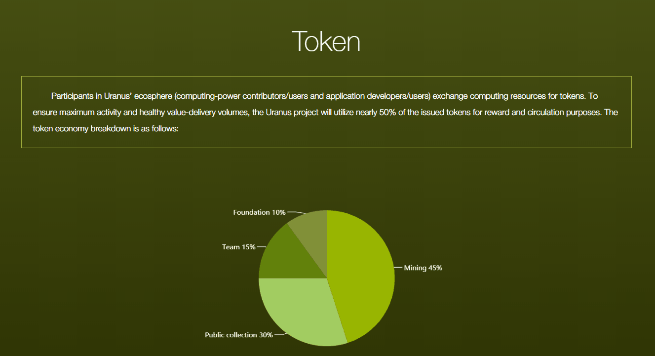 Uranus стремится решить проблему недоиспользования вычислительного терминала на персональных компьютерах, корпоративных компьютерах или традиционных физических серверах. Недоиспользование приводит к тому, что мировой рынок потеряет более 4 триллионов долларов в вычислительных ресурсах. Благодаря использованию избыточной вычислительной мощности, Uranus может передавать вычислительную мощность при выполнении определенных вычислительных задач или целей, таких как вычисление ДНК, вычисление планетарной орбиты, реклама, игры и анализ данных о погоде.