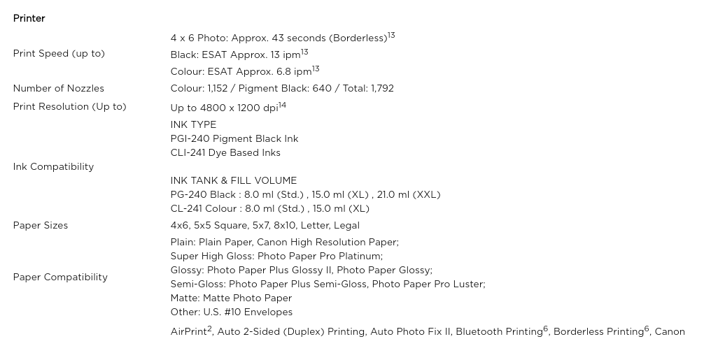 Spec canon TS5120