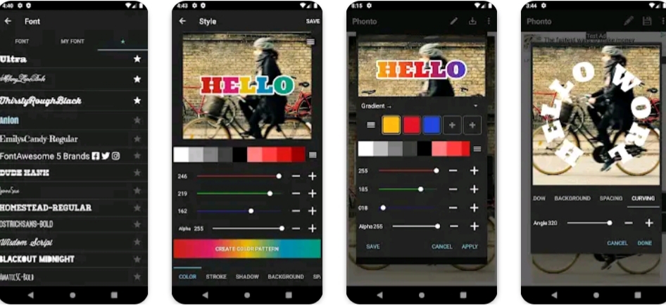 This is app is so cool. I started using this app in editing my pictures a weeks ago and it's awesome, I loved all the fonts. Plus, You can also download some fonts in the fonts websites and install it here. But my problem is there should be a settings or ( I forgot what it's called) to adjust the height of the font (not the size) But all is food for this app except for that setting I just hope you will put a settings like that it will be huge help. Best font app! I use this app for whenever I need some cool text on a photo, video, ect. Its really nice and very simple to use, so I have no complaints. The one thing I love about it is you can add your own fonts into the app! It's a very simple process and only takes a minute. Very good app!