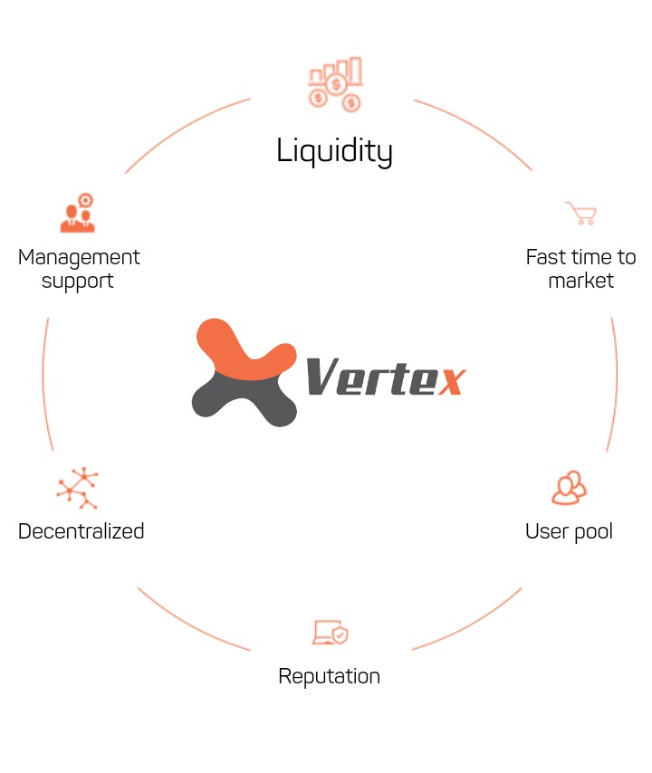Vertex is creating the first market of its kind and a unique token that combines trading, investment capital experience, and fair-value based tokenization. Vertex will create a financial ecosystem that will ensure a high-end, profitable market for investments in cryptocurrency through its platform. Vertex offers the first aftermarket for ICOs, which will provide investors with strong opportunities to get high returns and bring more fiat resources into cryptocurrency markets, by attracting capital through its ICO vetting processes.