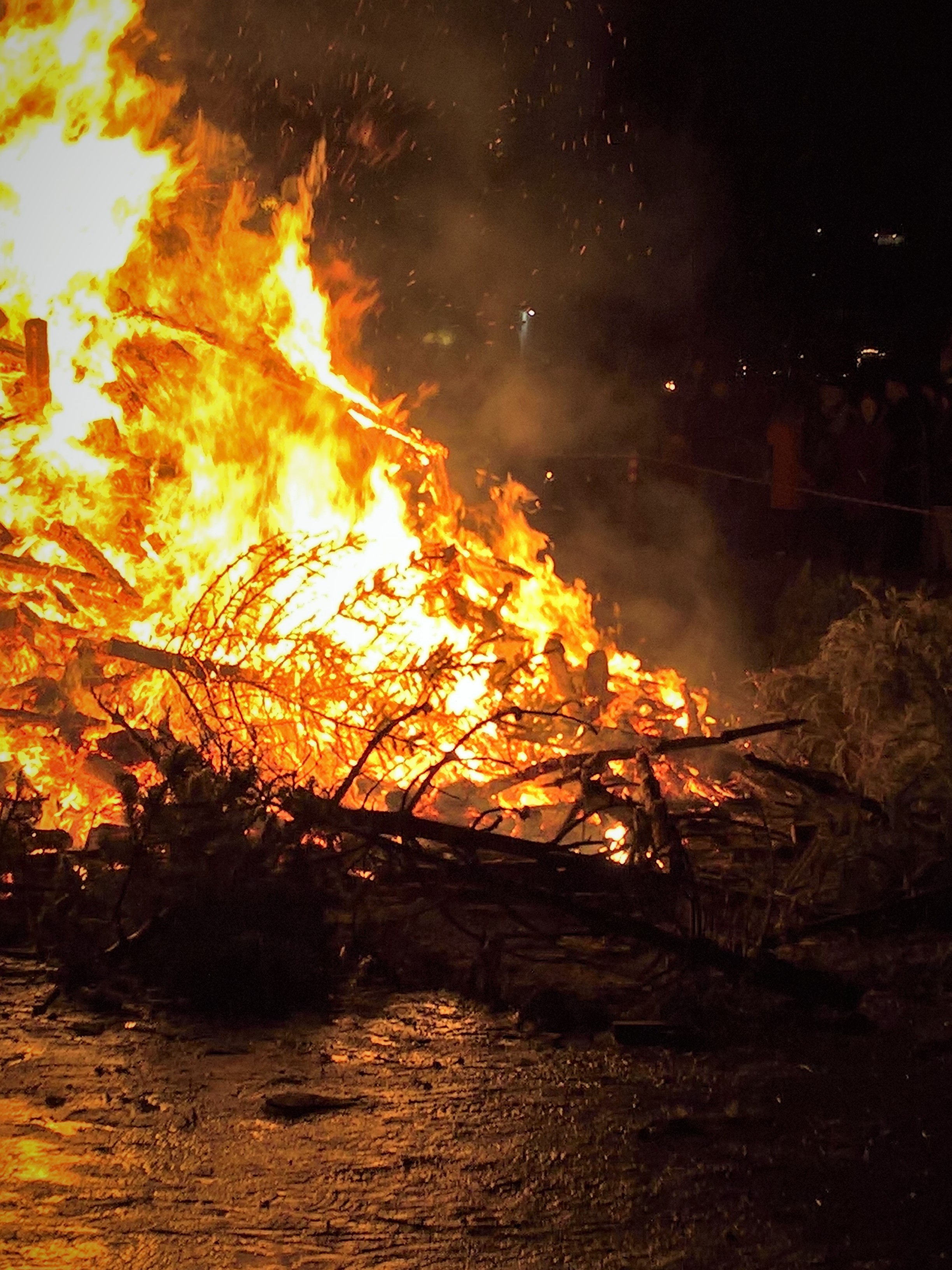 I didn't know what to expect - except for what I already knew: that it is going to be very close to the rocky, volcanic beach and that it was very likely to go off very soon. Christmas trees are burning so quickly! You don't get to throw them into the pyre and, with a whistling, they melt under the heat.