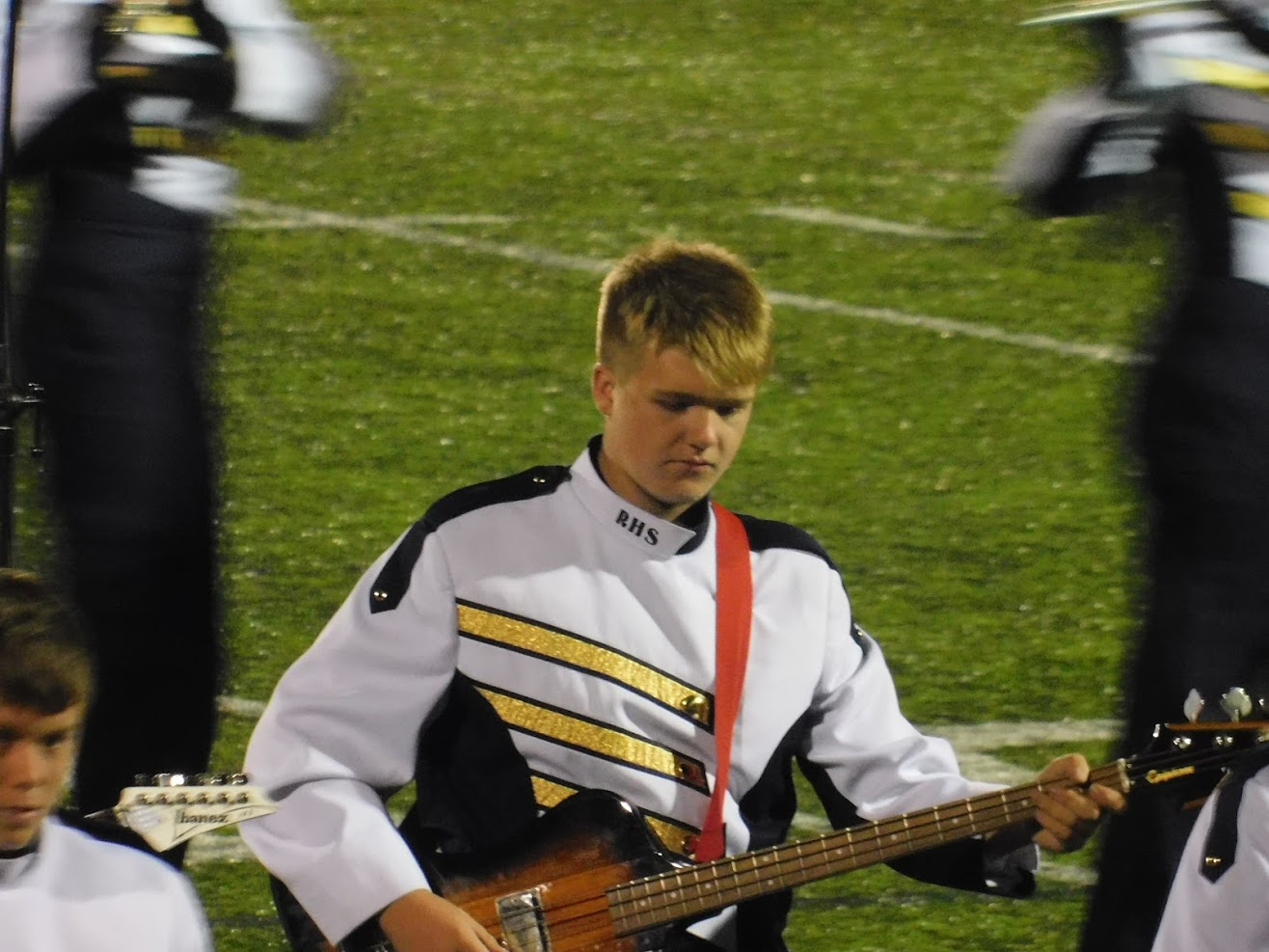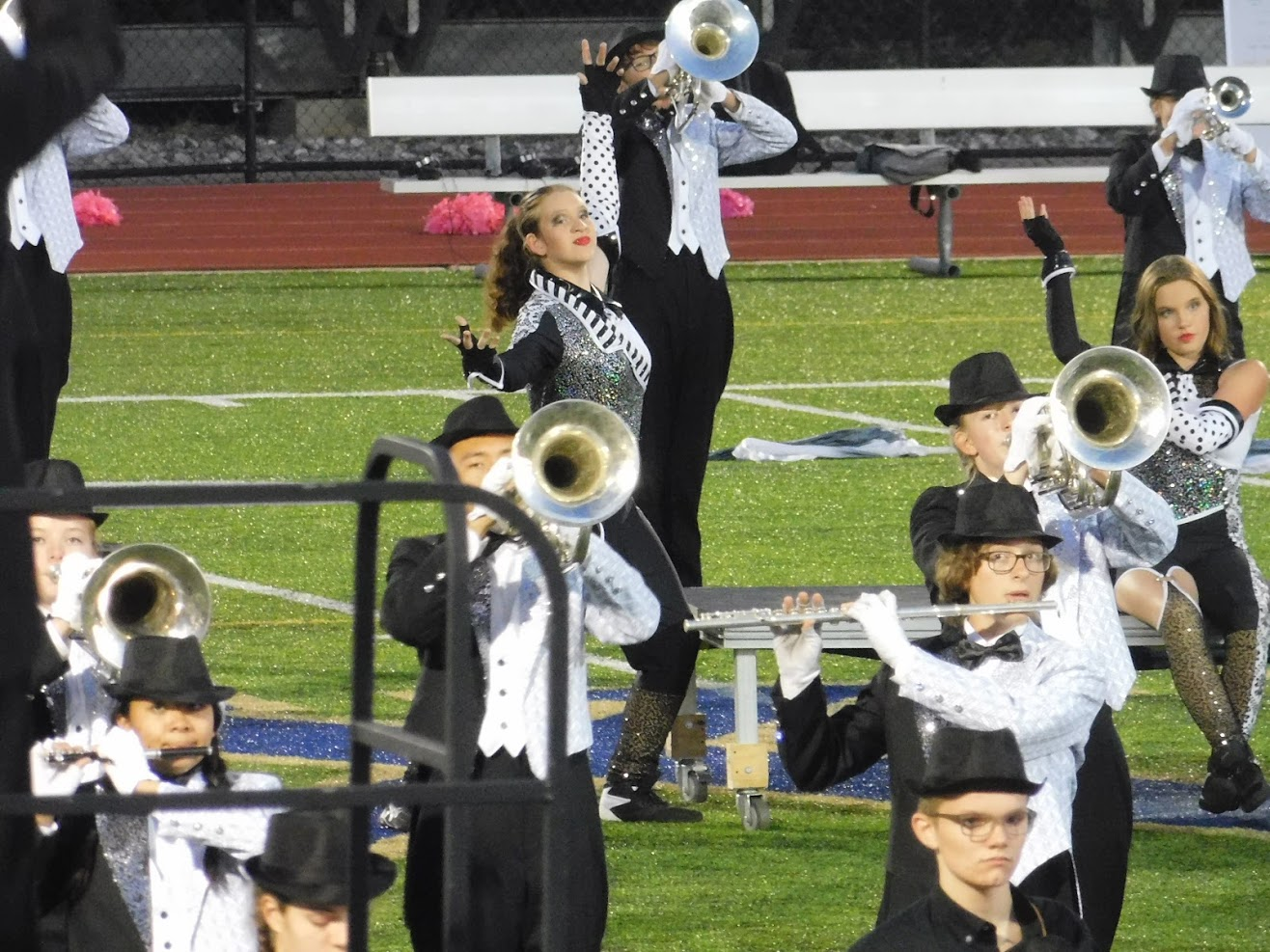 Once again, Rustin played the half-time show, so my photos of the Unionville band (taken during daylight/dusk) came out better. After dark, it's just blind luck that determines whether my photos come out in focus or blurred.
