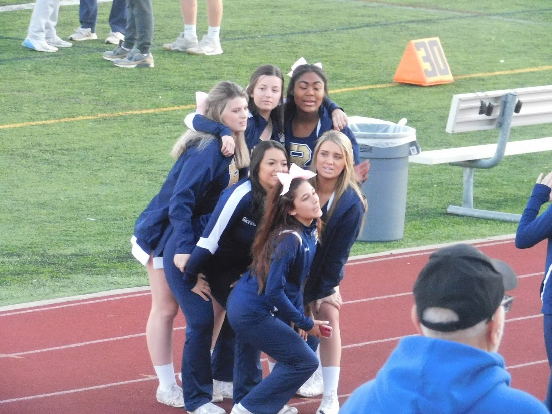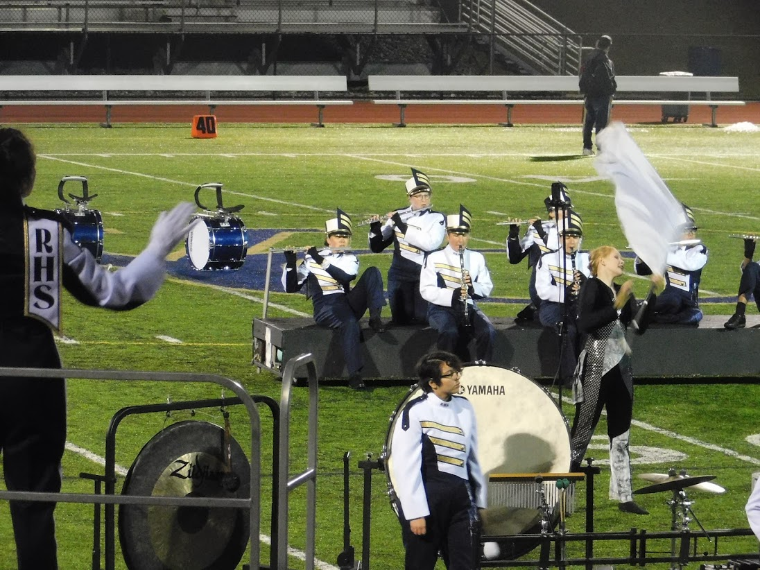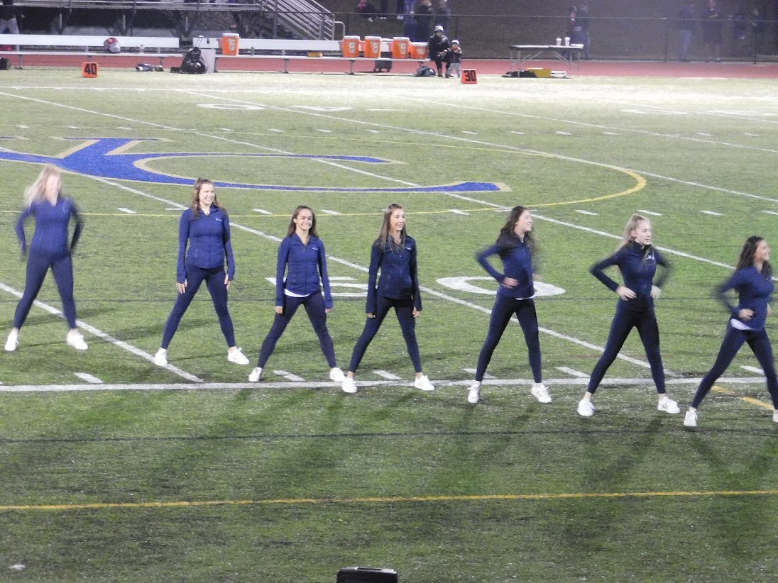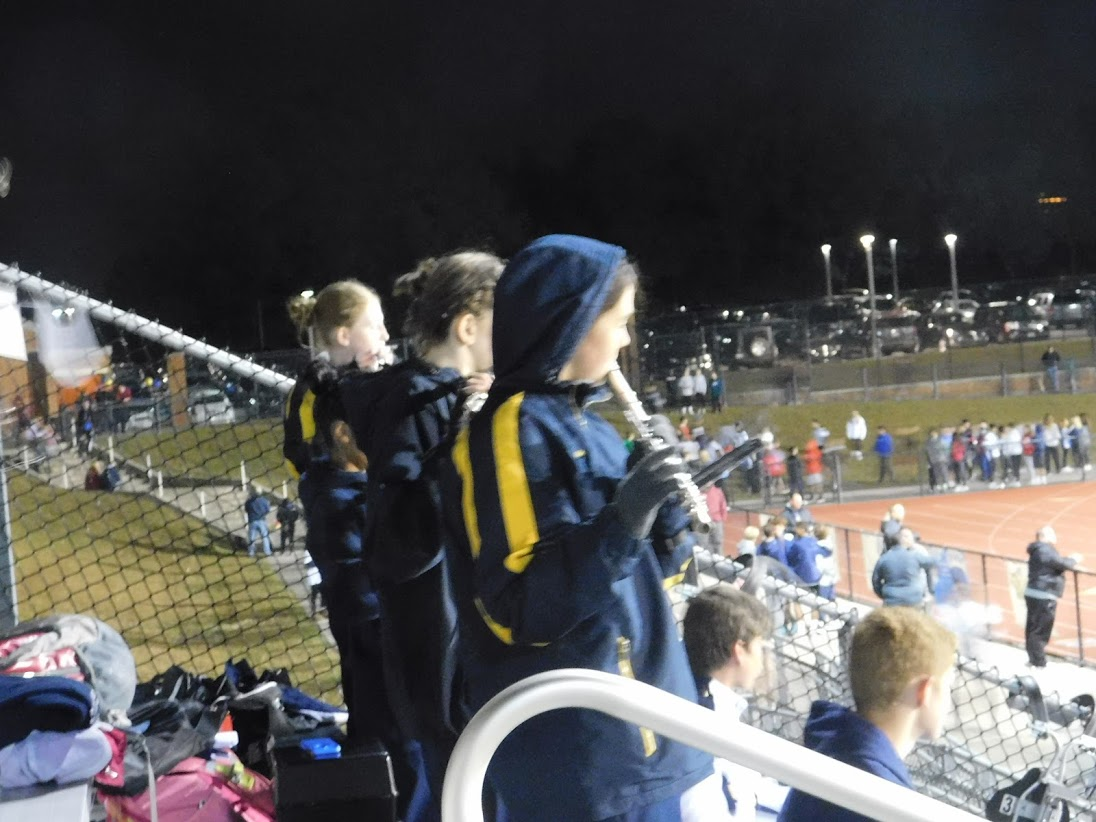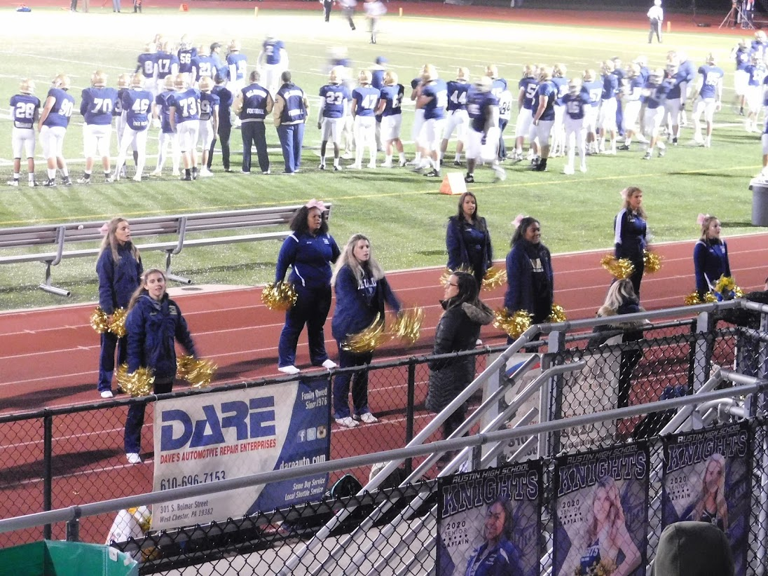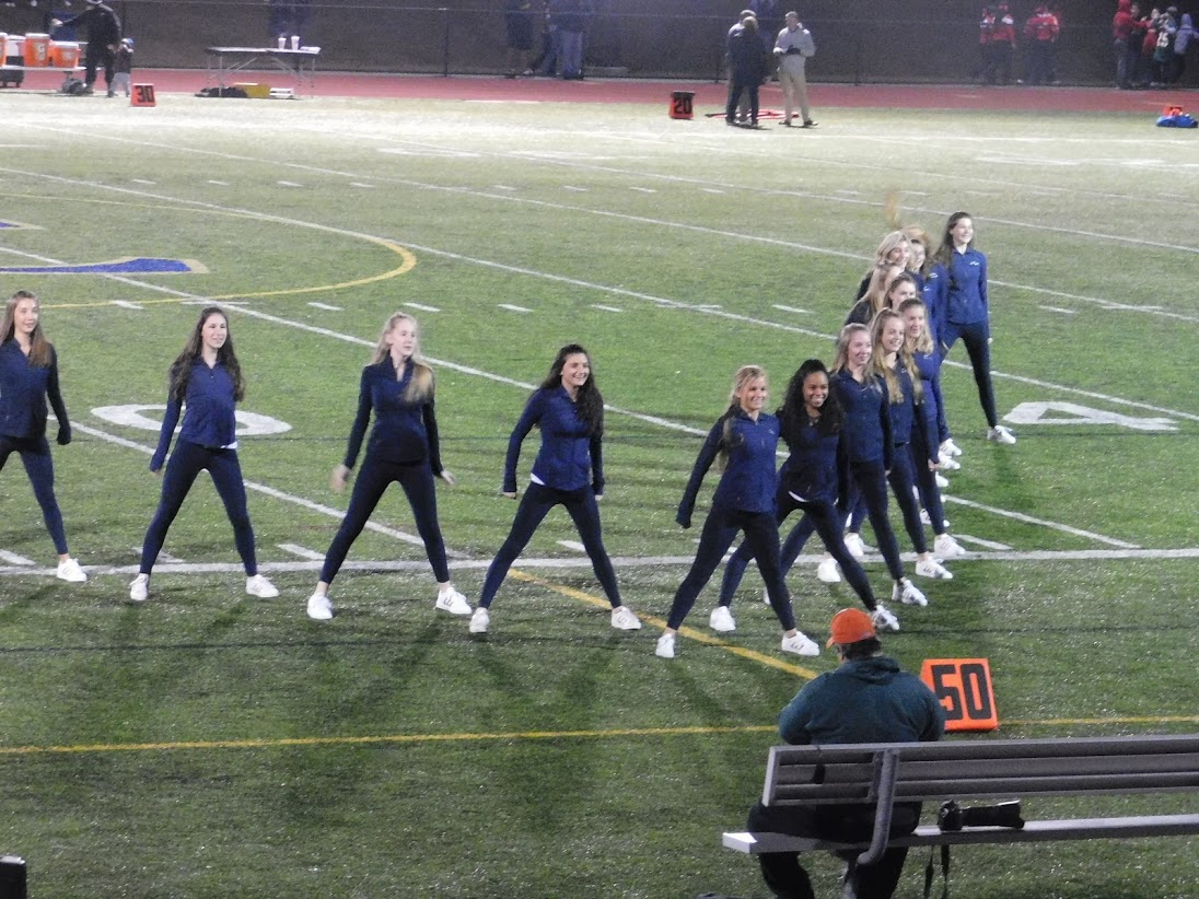 Because of these Senior Night recognitions, it was not possible for a band to play a pre-game show, so the Rustin dance team and the visiting band, from West Chester East, both performed during half time, then Rustin's marching band performed to a small audience of die-hards at the end of the football game.