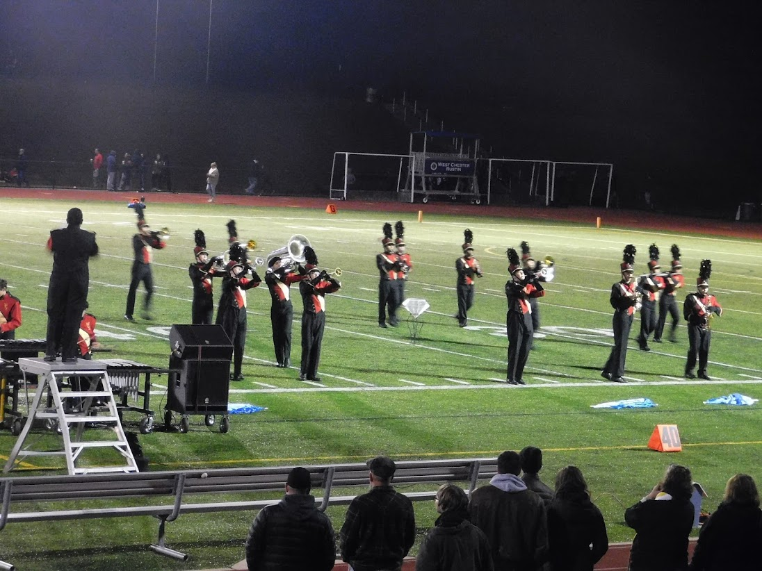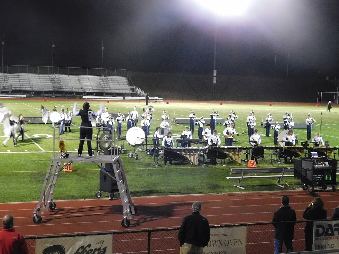 This game was the kick-off to the start of an exceptionally busy period for Rustin's marching band. The next day, October 19, they competed in a marching band competition at West Chester University of PA. Then, on October 23, they marched in the local Halloween parade. In addition to the regular football games every Friday, they also had/have marching band competitions on October 26 at the school's own campus, then on November 2 in Allentown.