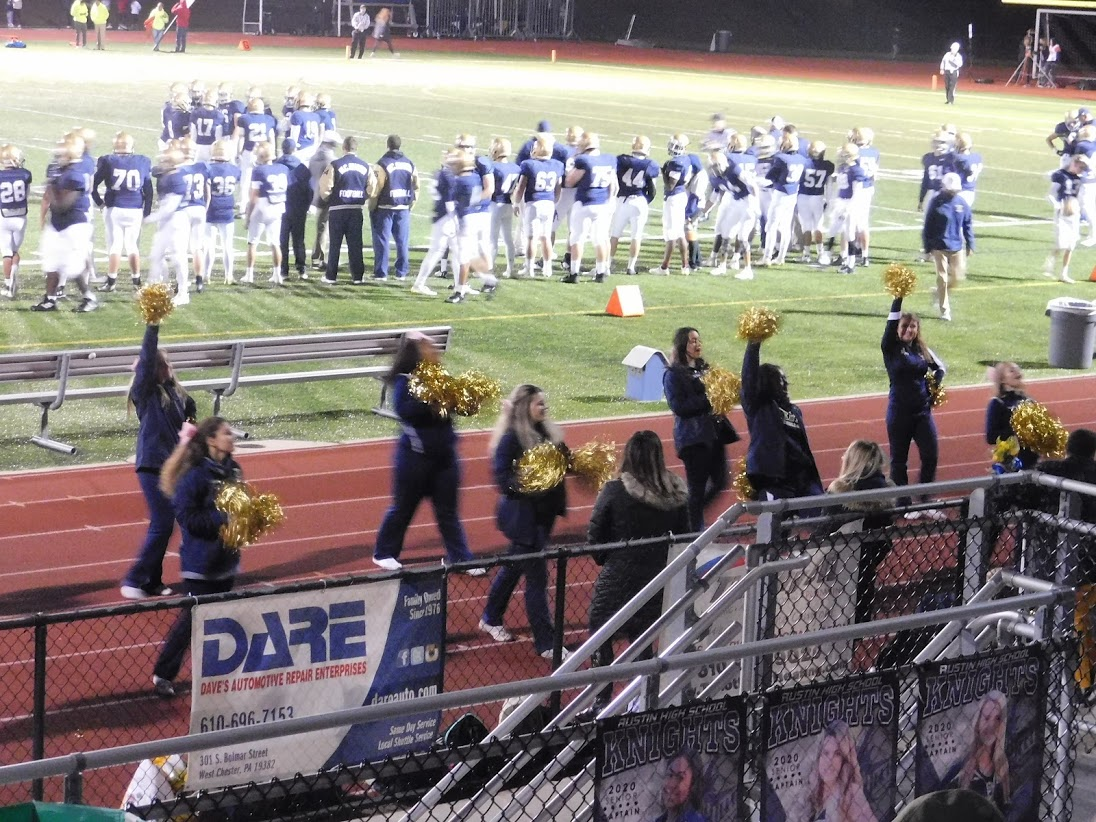 West Chester East pulled ahead by a score of 7-0 in the first quarter, and Rustin had a chance to tie it up just before the end of the first half. In my opinion, Rustin ran the ball across the goal line, but the officials on the field ruled otherwise and a player from East emerged from a big pile-up with the ball. After that, there was a major momentum shift, with East scoring two unanswered touchdowns in the 3rd quarter. In the fourth quarter, Rustin got some momentum back with a single touchdown, and a chance for a 2nd with a near-goal-line series of downs, but they couldn't convert that into a score, and East iced the game with yet another touchdown.