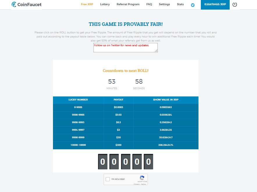 You will have a chance to win up to $300 in ripple every hour.