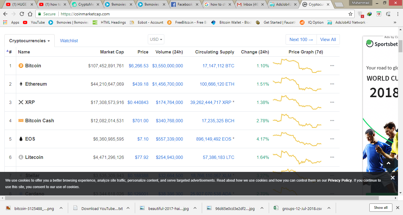 Here is @cryptomechanic and I'm back today with another content for you guys and today I'm gonna be talking about ripple XRP some great news for XRP and more news updates.I'm going to give you my price prediction for the end of 2018.So currently the total market caps at 254 billion still well below 300 billion Bitcoin dominance is starting to rise up to 42.8% and it looks like today everything is in the green which is refreshing to see it doesn't mean we are headed for another bull run but it is a refreshing to see instead of everything you know keeps dipping and things like that's refreshing to see. it's good that we don't have red in the market today.